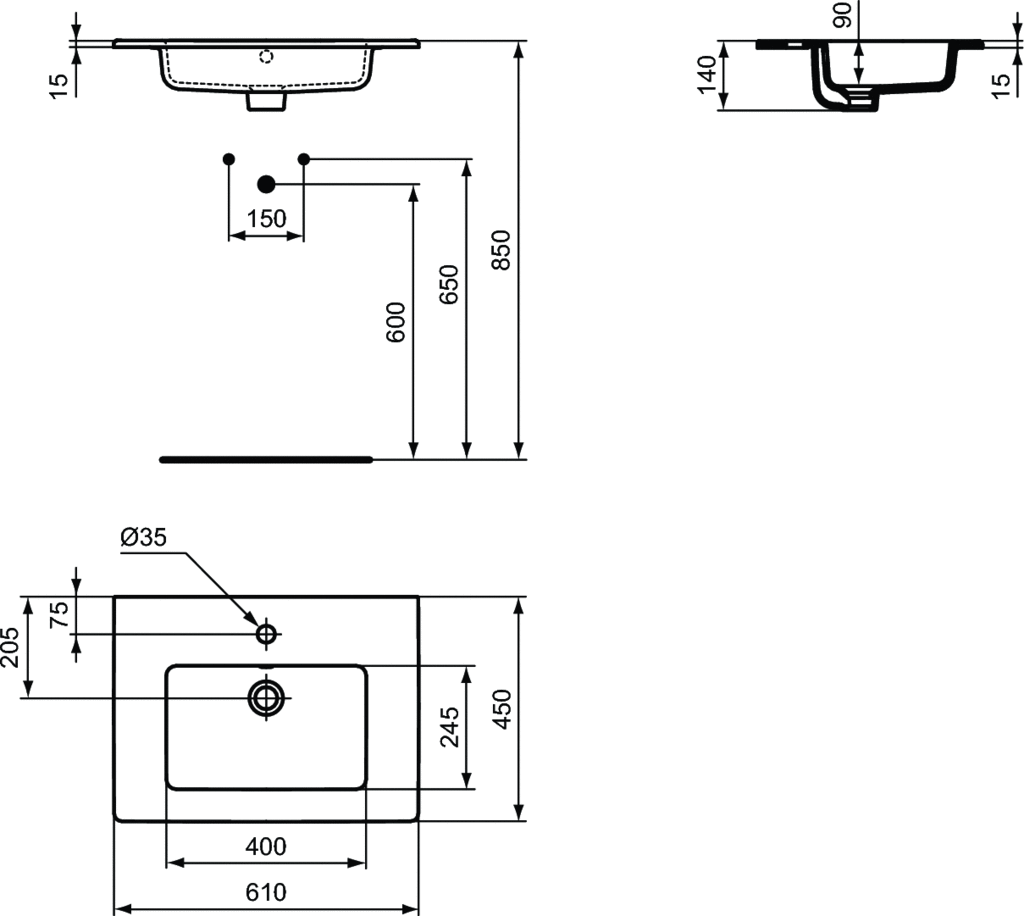 • Typ: Wpuszczane w blat/Z powierzchnią boczną