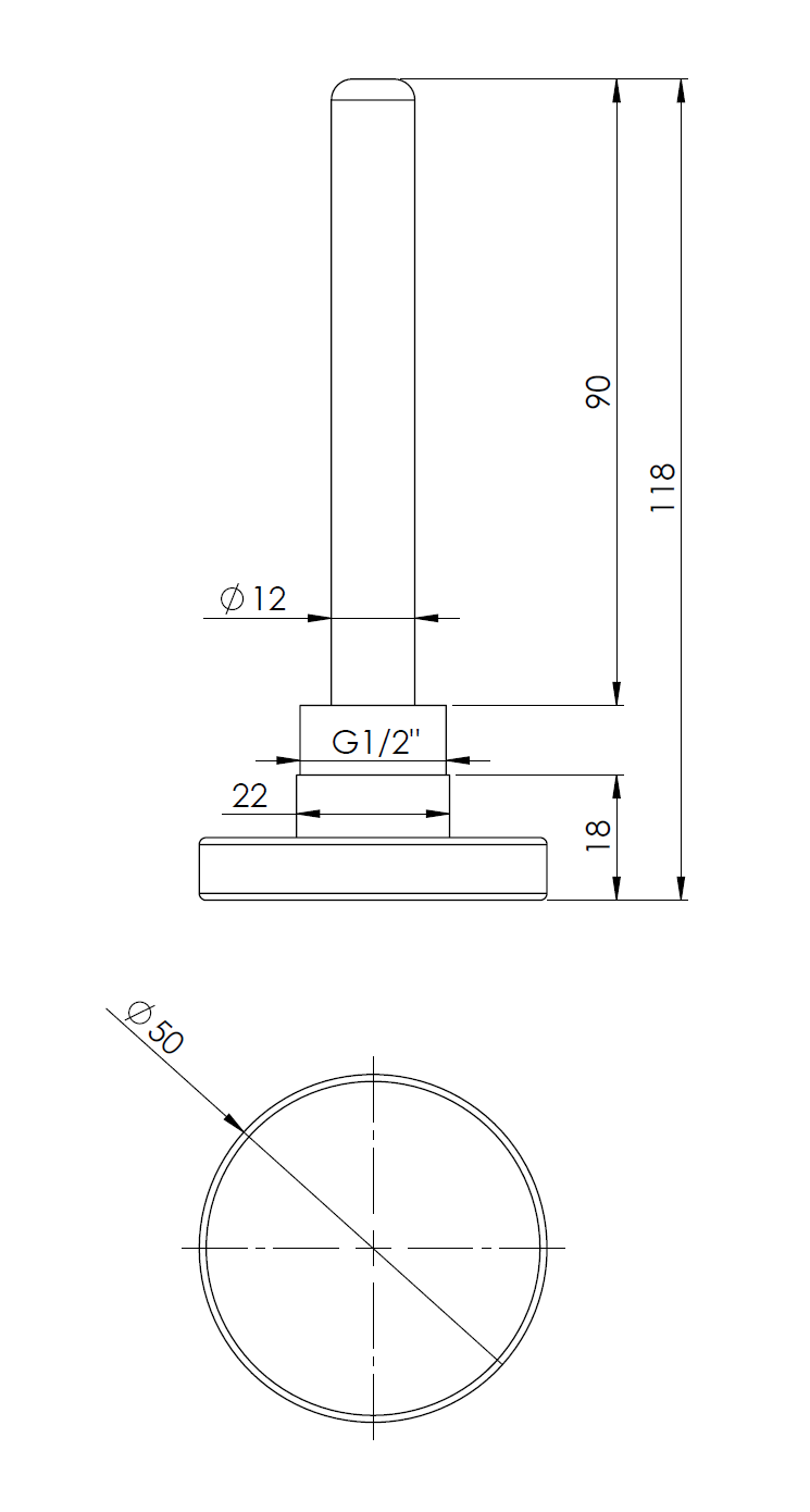Termometr bimetaliczny AFRISO BiTh fi 50 mm 0…120'C tuleja 100 mm połączenie ax