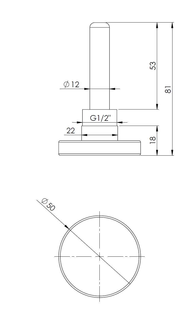 Termometr bimetaliczny AFRISO BiTh fi 50 mm 0…120'C tuleja 63 mm połączenie ax