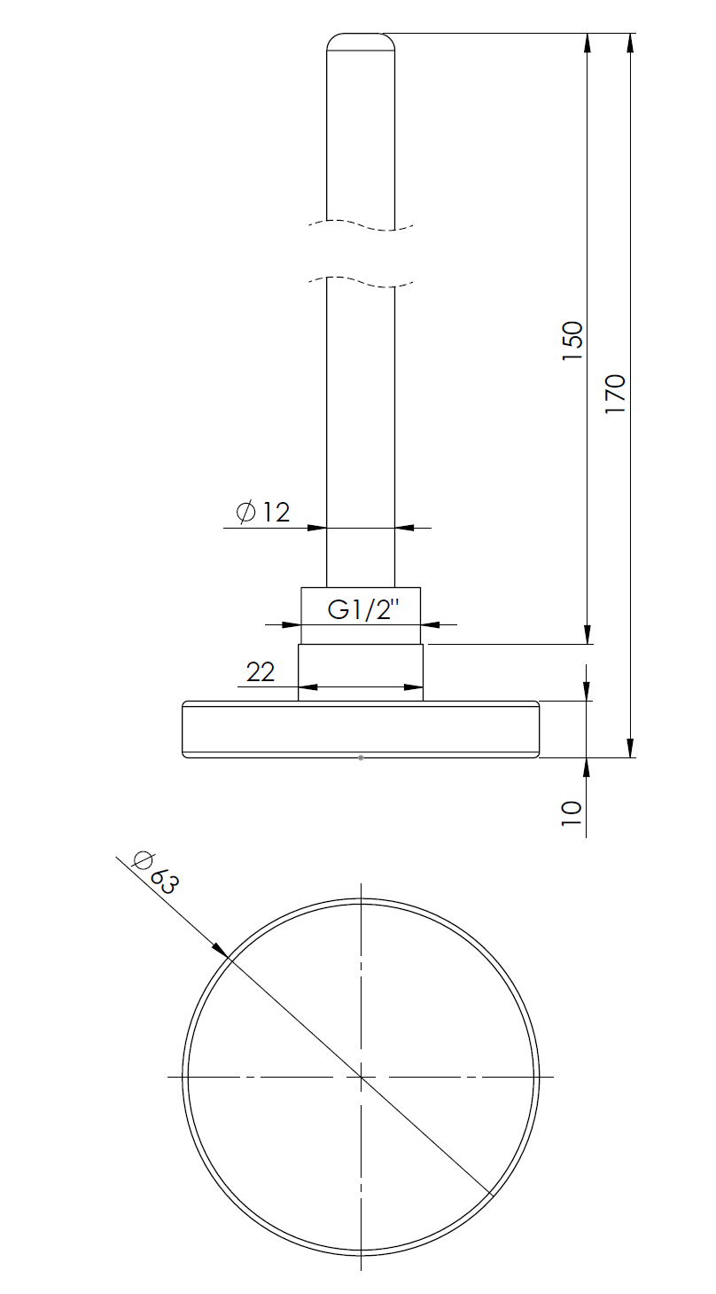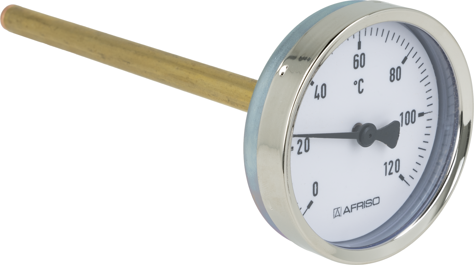 Termometr bimetaliczny AFRISO BiTh fi 63 mm 0…120'C tuleja 150 mm połączenie ax