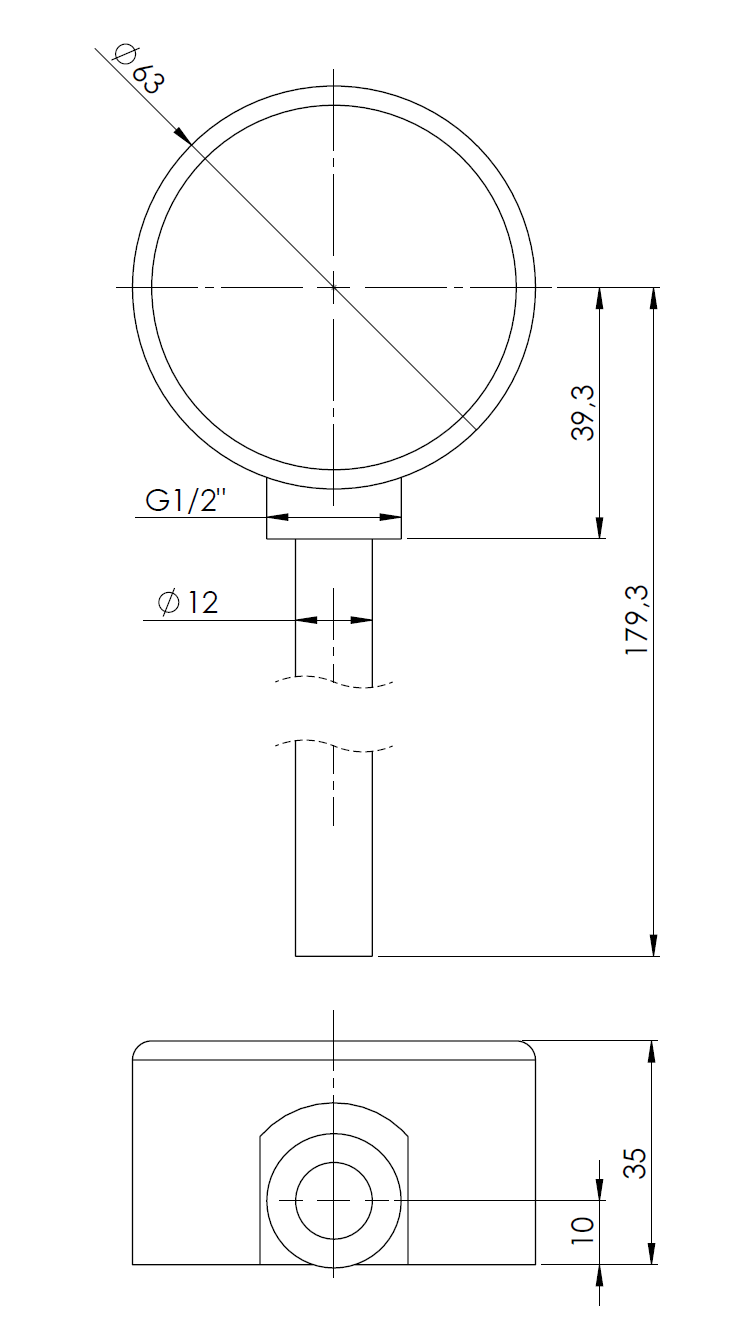 Termometr bimetaliczny AFRISO BiTh fi 63 mm 0…60'C tuleja 150 mm połączenie rad