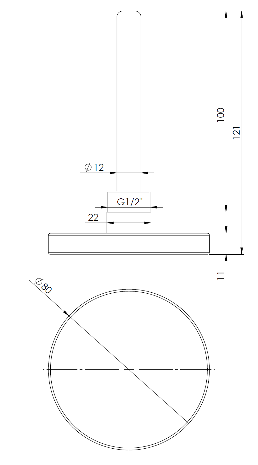 Termometr bimetaliczny AFRISO BiTh fi 80 mm 0…120'C tuleja 100 mm połączenie ax