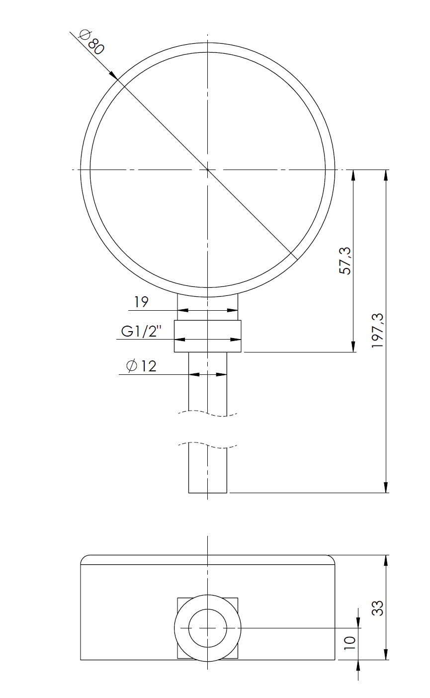 Termometr bimetaliczny AFRISO BiTh fi 80 mm -20…60'C tuleja 150 mm połączenie rad