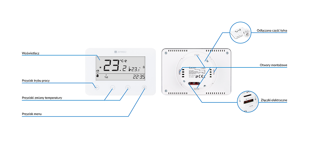 Termostat AFRISO RT05 zasilanie 230 V AC floorcontrol 5-35'C