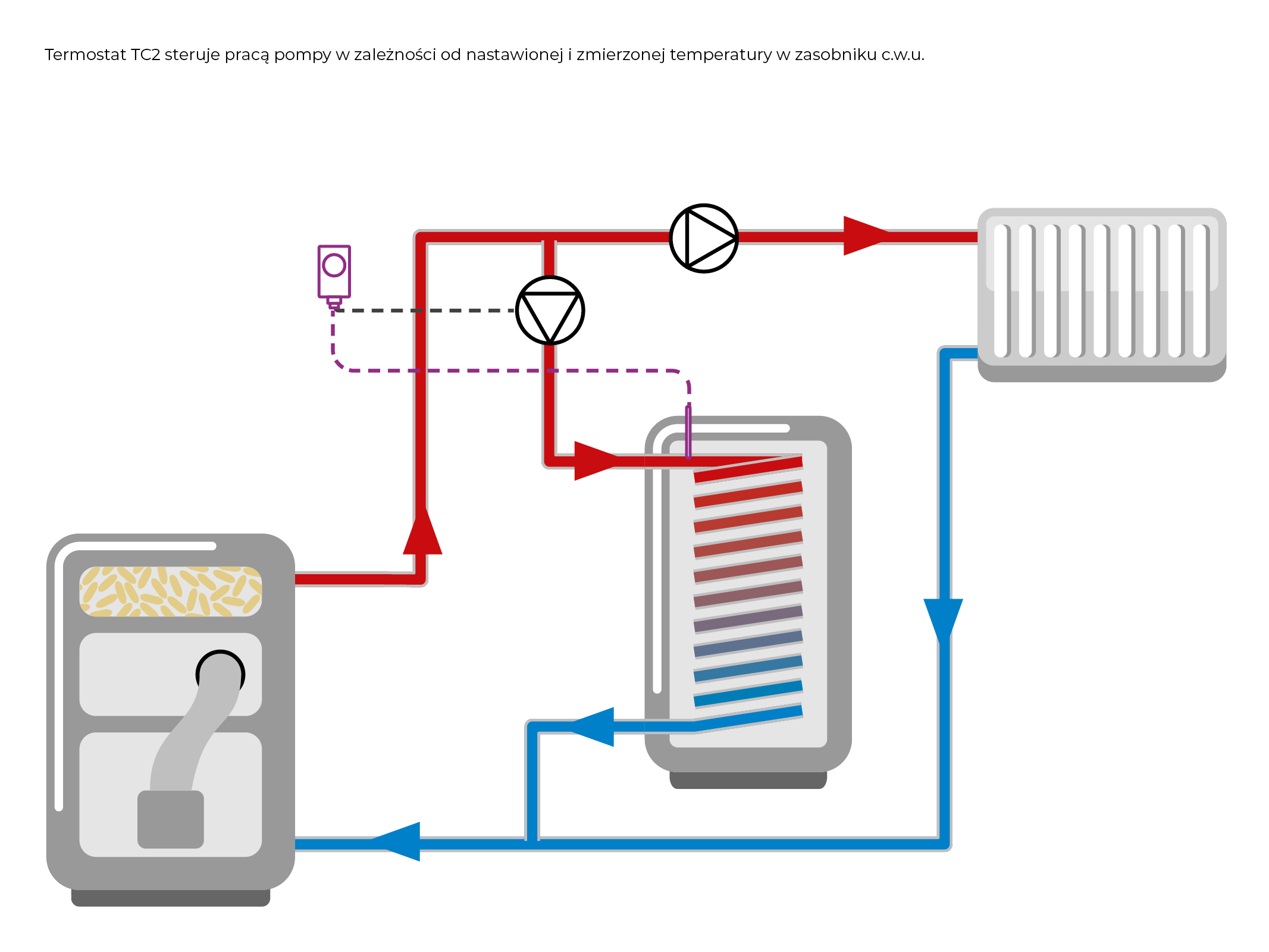 Włącza lub wyłącza sterowane urządzenie w zależności od temperatury zmierzonej w pomieszczeniu i nastawionej na pokrętle.