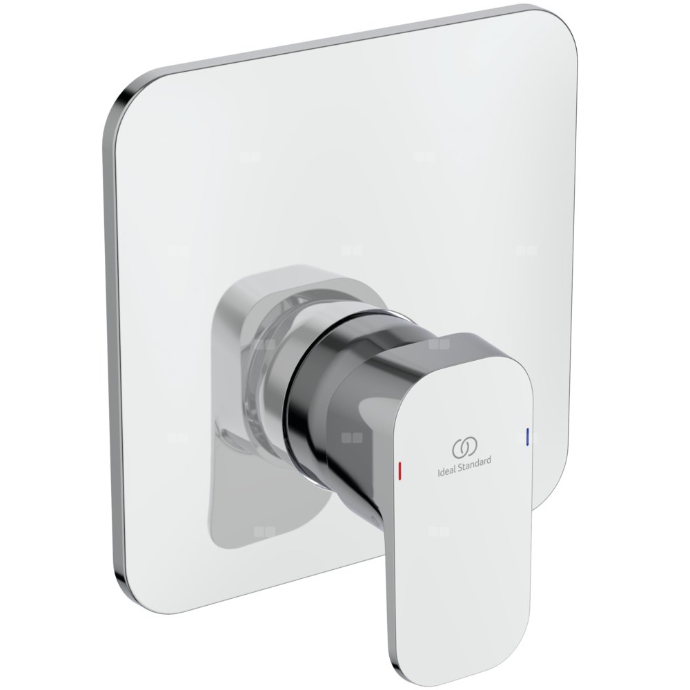 Zestaw montażowy baterii natryskowej podtynkowej. Głowica 47 mm CLICK z funkcją ECO i ogranicznikiem temperatury. Metalowa, smukła rozeta oraz metalowy uchwyt z nadrukowanymi czerwonymi i niebieskimi oznaczeniami. Do skompletowania z uniwersalnym zestawem podtynkowym A1000NU.