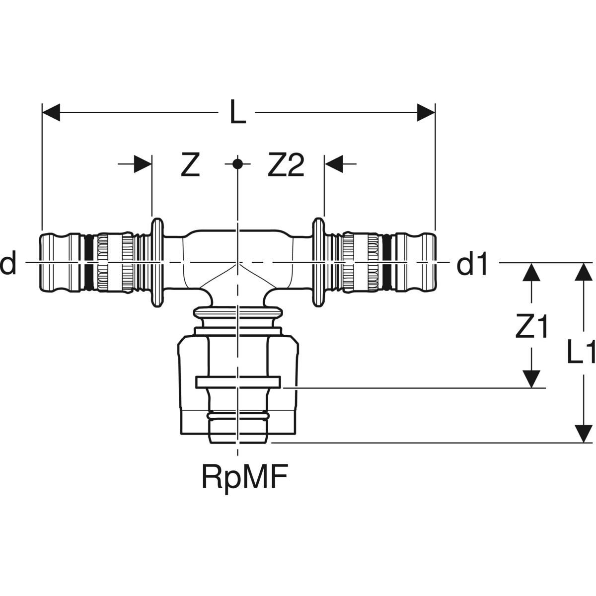 Trójnik GEBERIT Mepla miedź 26 mm x 20 x 20 mm (końcówka wciskowa x mufa zaciskowa x końcówka wciskowa)