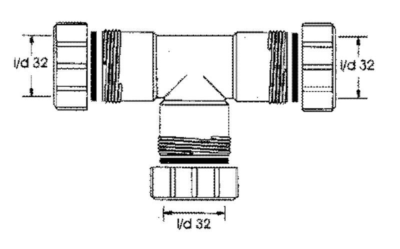 Trójnik nakrętno-nakrętny. Rozmiar 32x32x32mm.