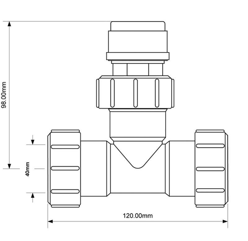 Zawór napowietrzający kanalizacyjny z trójnikiem 40x40x40mm.