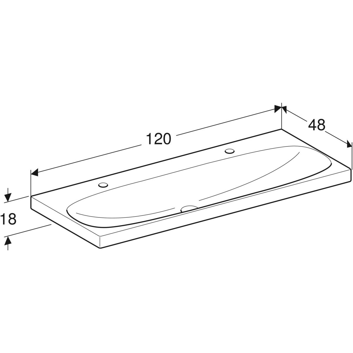 Umywalka GEBERIT Acanto 2-stanowiskowa prostokątna, biała, 1200mm, otwór na baterię z lewej i prawy, bez odpływu przelewowego, półka od ściany