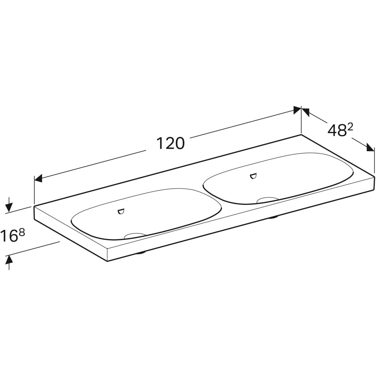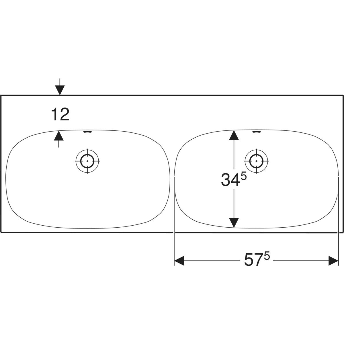 Umywalka GEBERIT Acanto podwójna 2-stanowiskowa prostokątna, biała / KeraTect, 1200mm, bez otworu na baterię, z odpływem przelewowym, półka od ściany