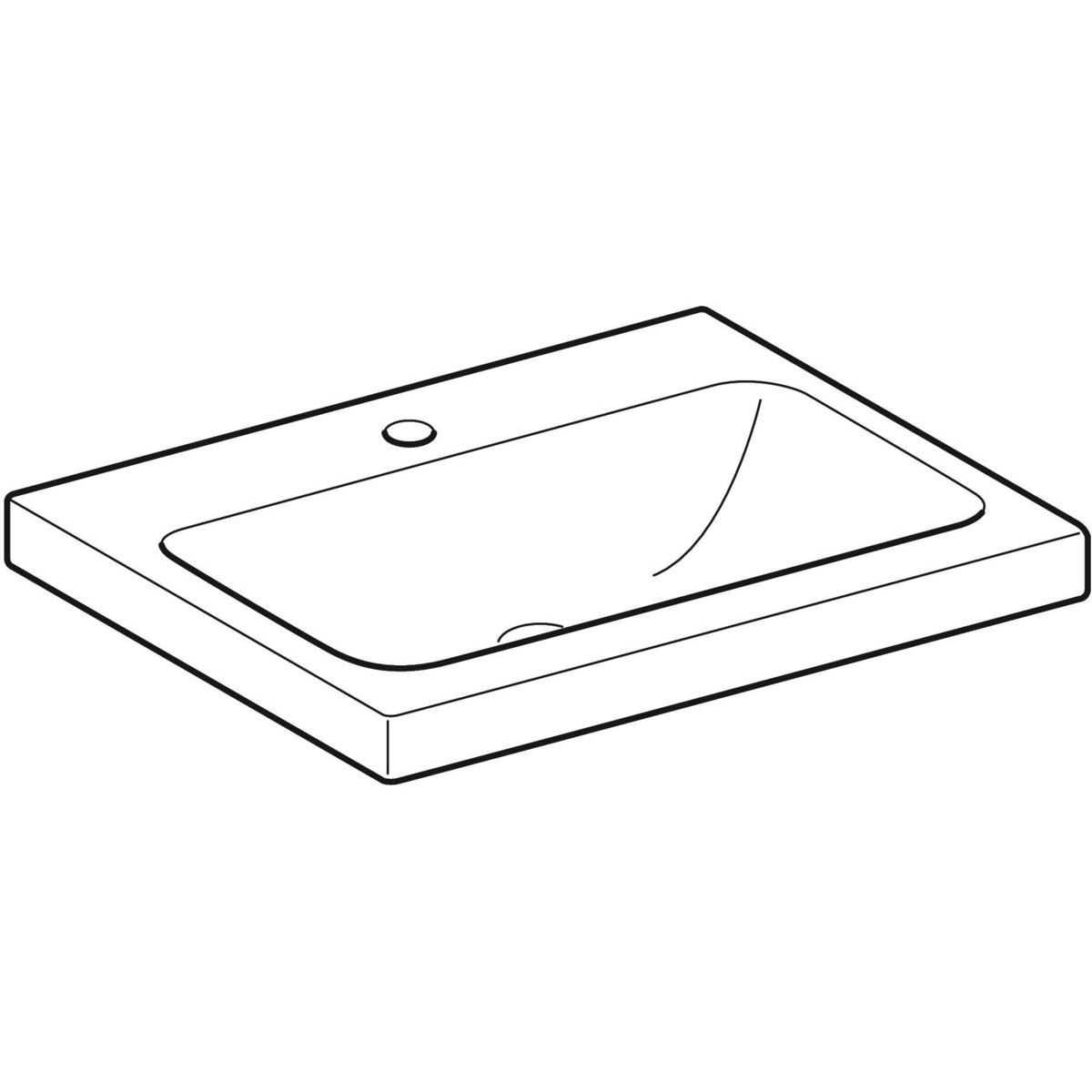 Umywalka GEBERIT iCon Light prostokątna, biała, 600mm, otwór na baterię na środku, bez odpływu przelewowego, półka od ściany