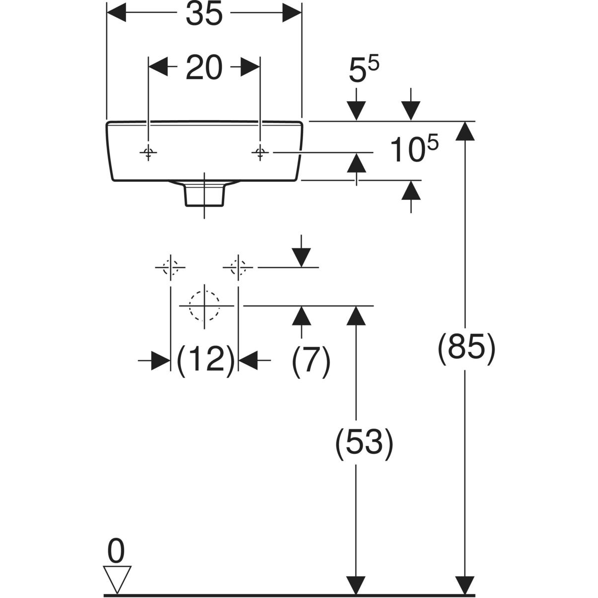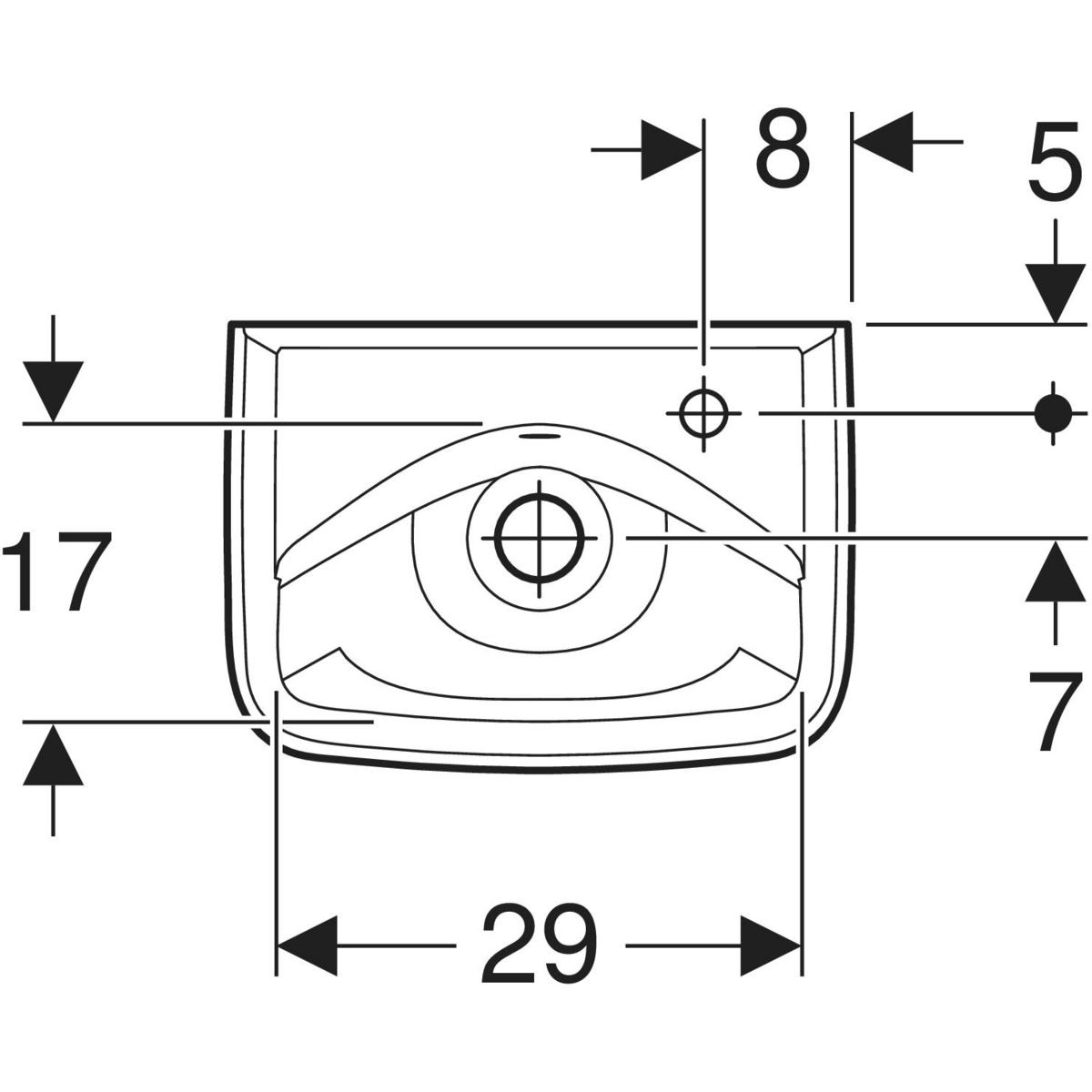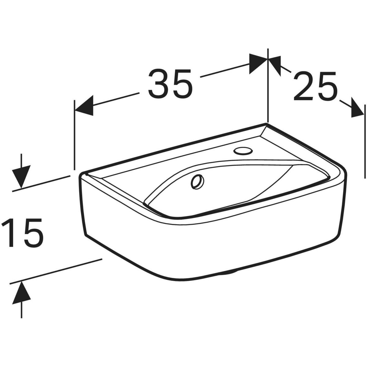 Umywalka mała Koło Rekord, kształt geometryczny, krótka: 35x25cm, Otwór na baterię=Prawa strona, Przelew=Widoczny, Biały