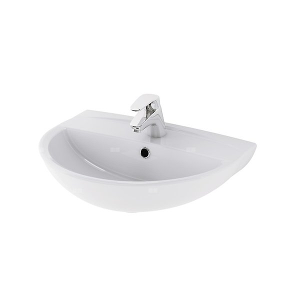 Umywalka ceramiczna z centralnie umieszczonym otworem na armaturę, do montażu na ścianie