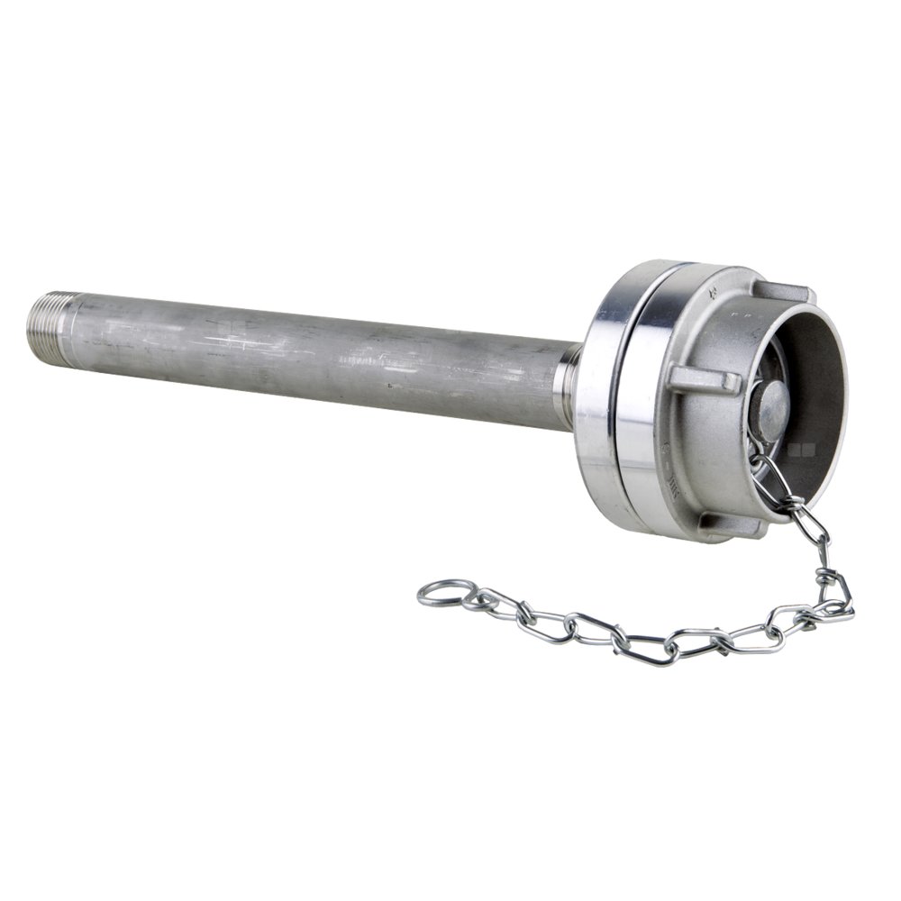 Króciec płuczący Storz C ze stali nierdzewnej o długości montażowej 300 mm do podłączenia stacji płuczącej rurociągów tłocznych ze złączem typu Storz C-52 Z pokrywą zamykającą w wersji Storz C