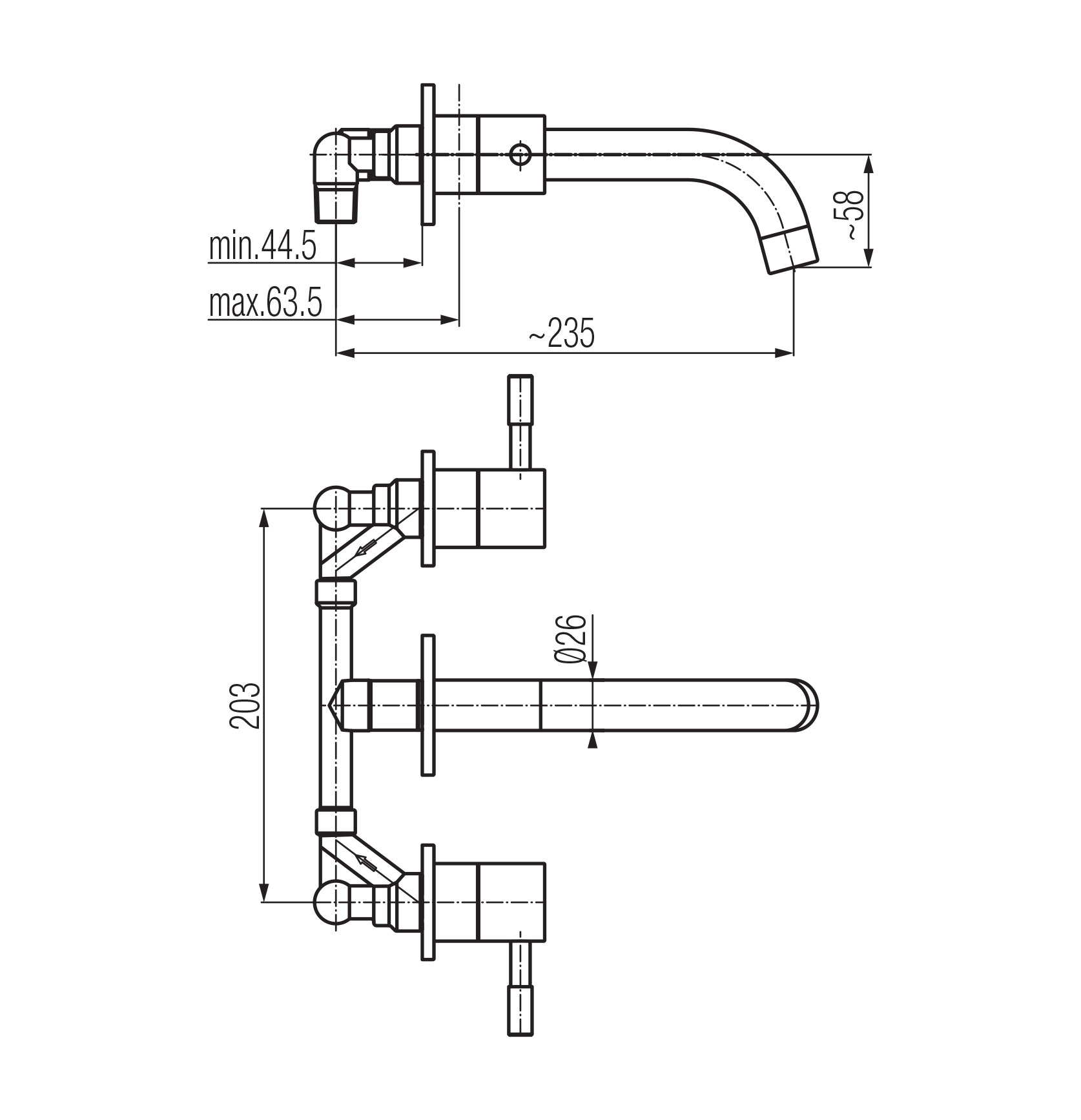 VEGANE Bateria umywalkowa 3-otworowa ścienna