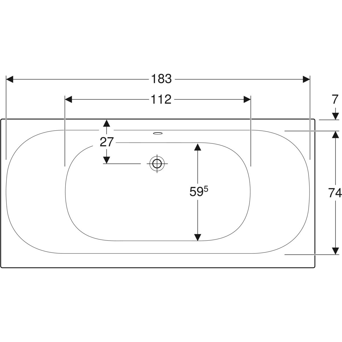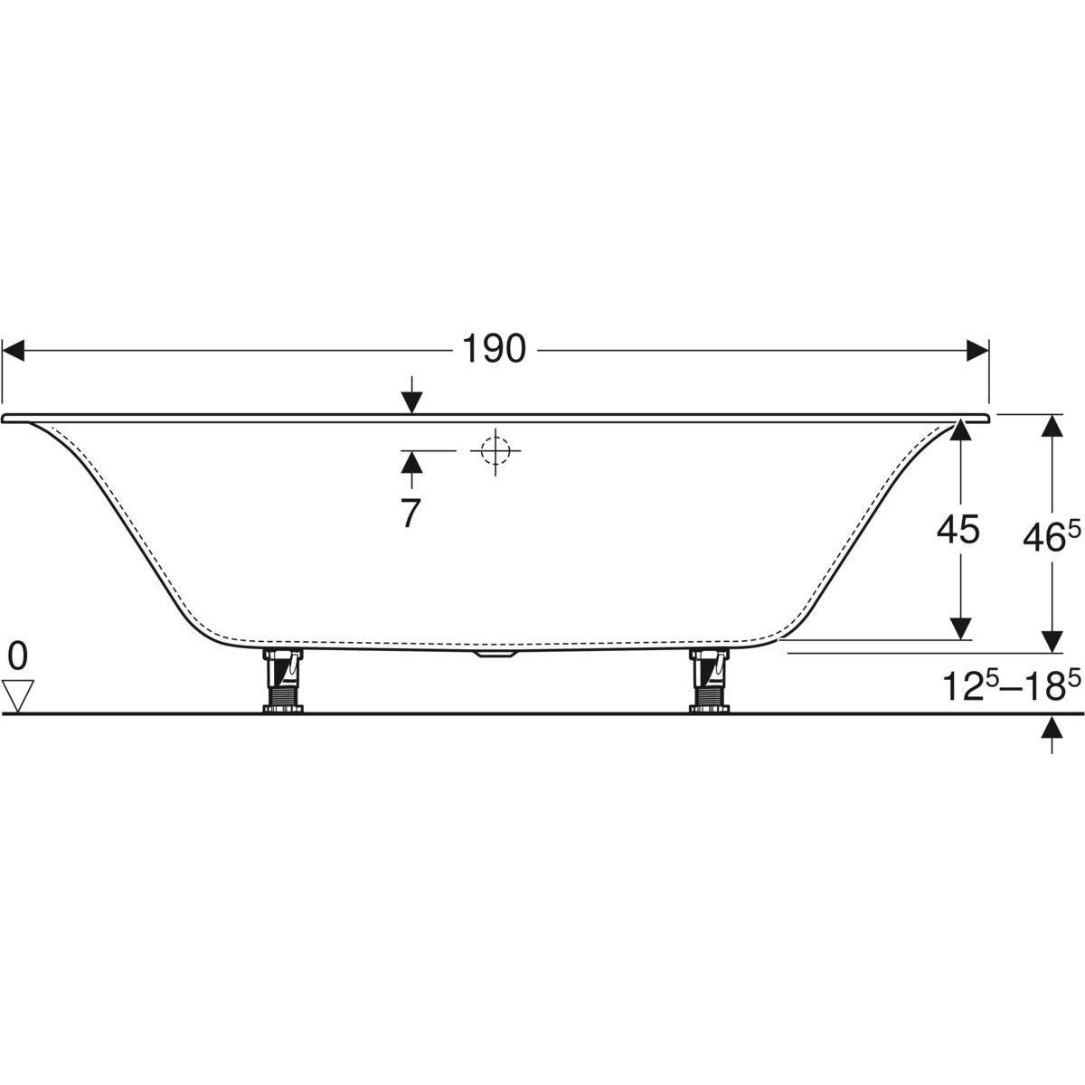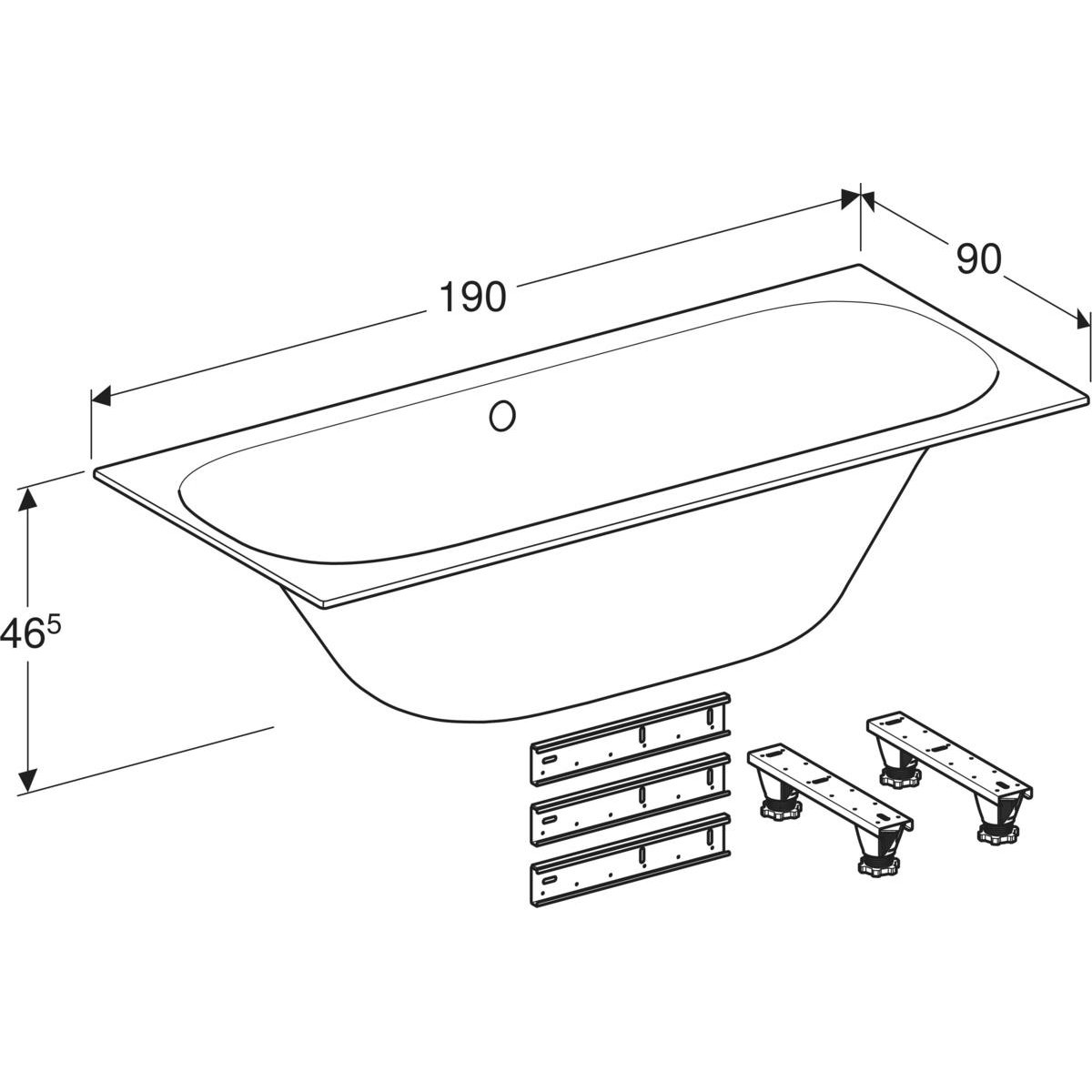 Wanna prostokątna Geberit Soana, slim rim, Duo, z nogami: 190x90cm, Całkowita pojemność=271l