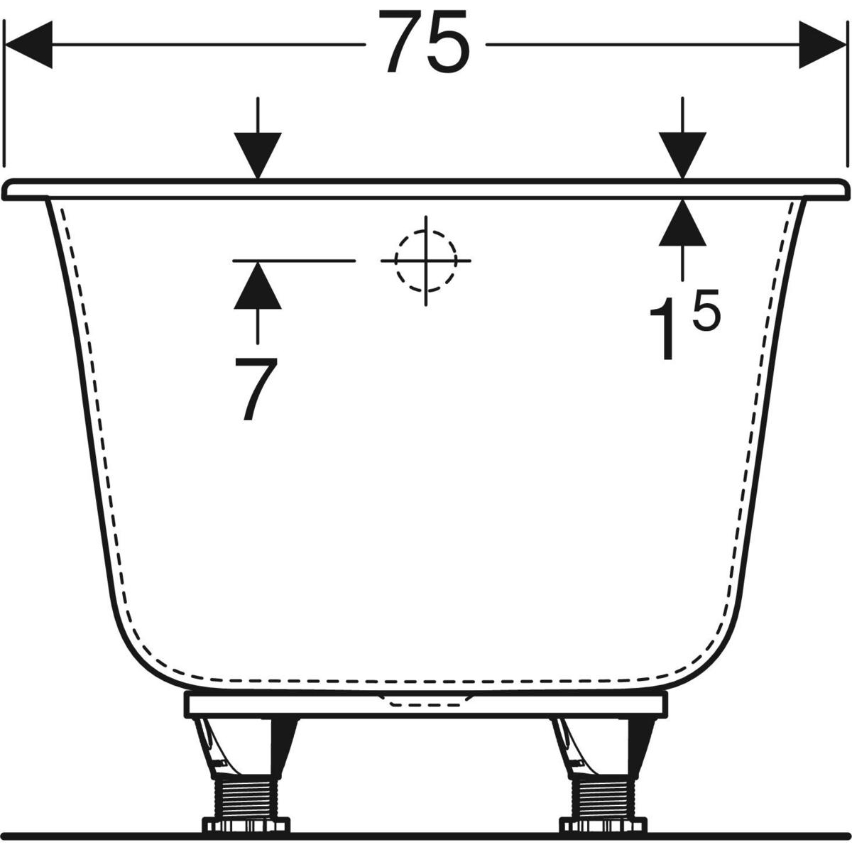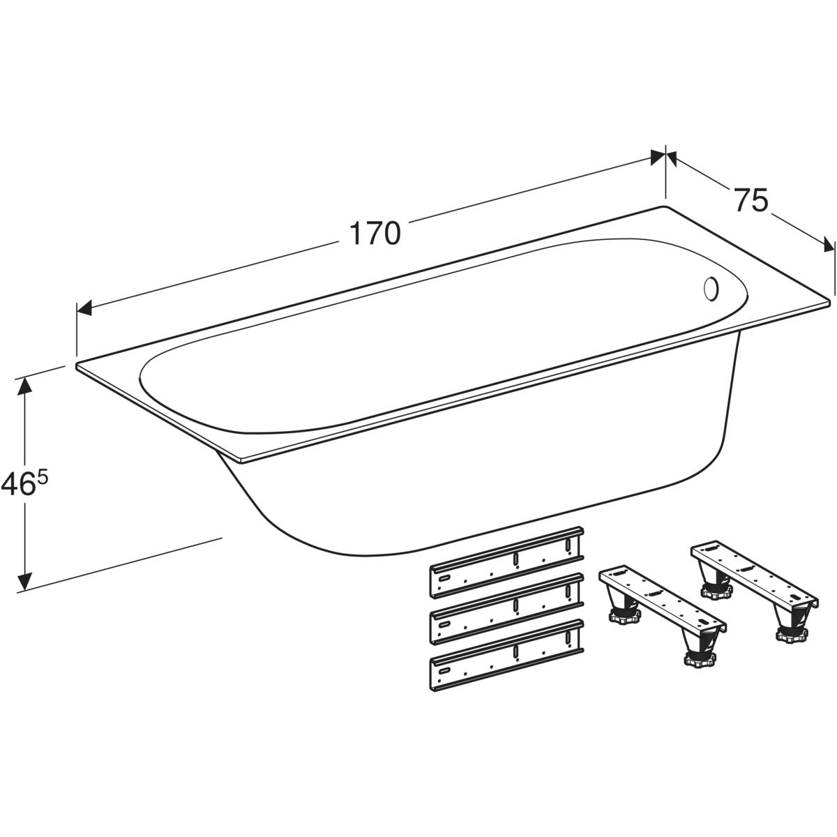 Wanna prostokątna Geberit Soana, slim rim, z nogami: 170x75cm, Całkowita pojemność=233l