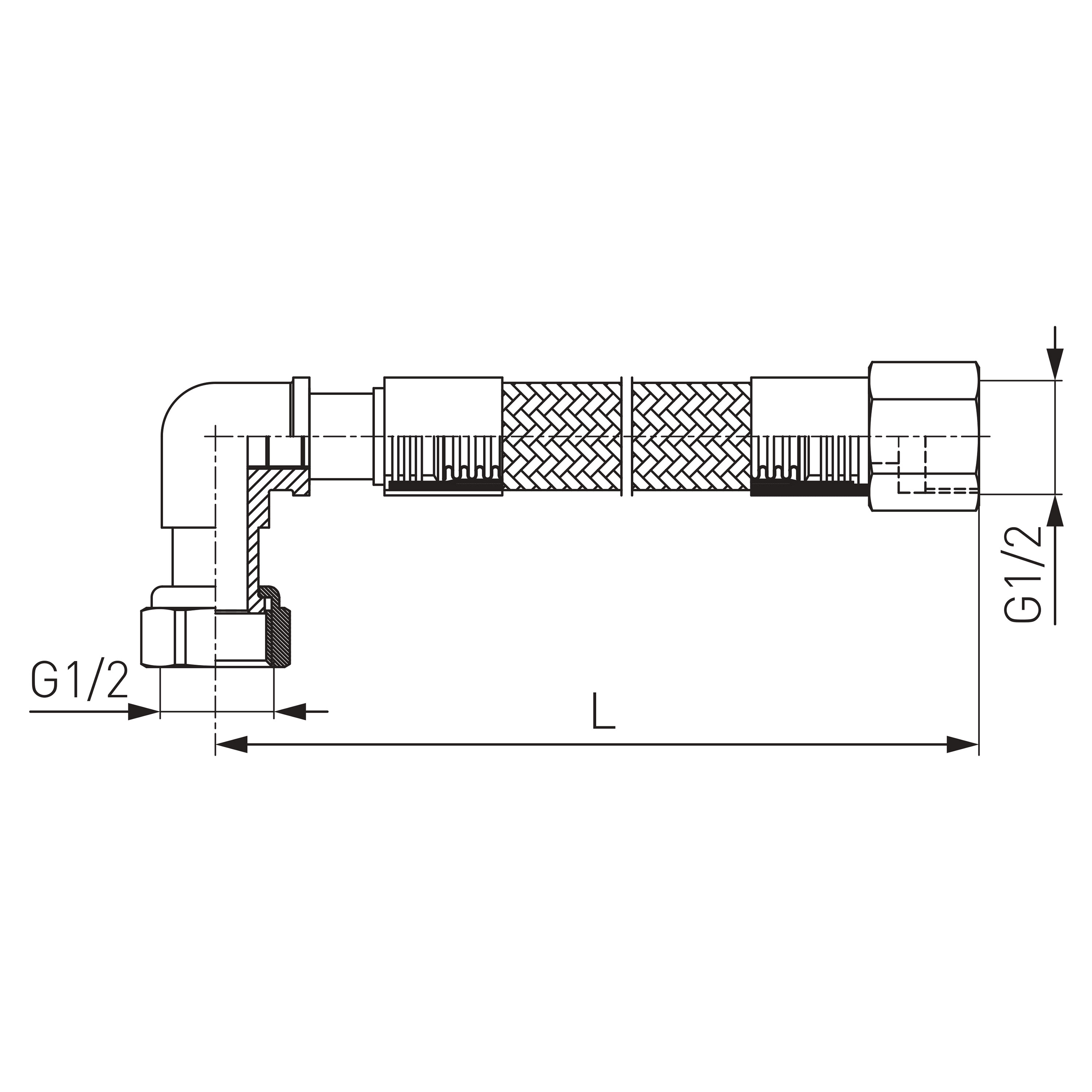 Wąż do gazu FERRO ze złączem gwintowanym 1/2'' Gwint wewnętrzny x GW kolano 1500 mm, oplot: PCV