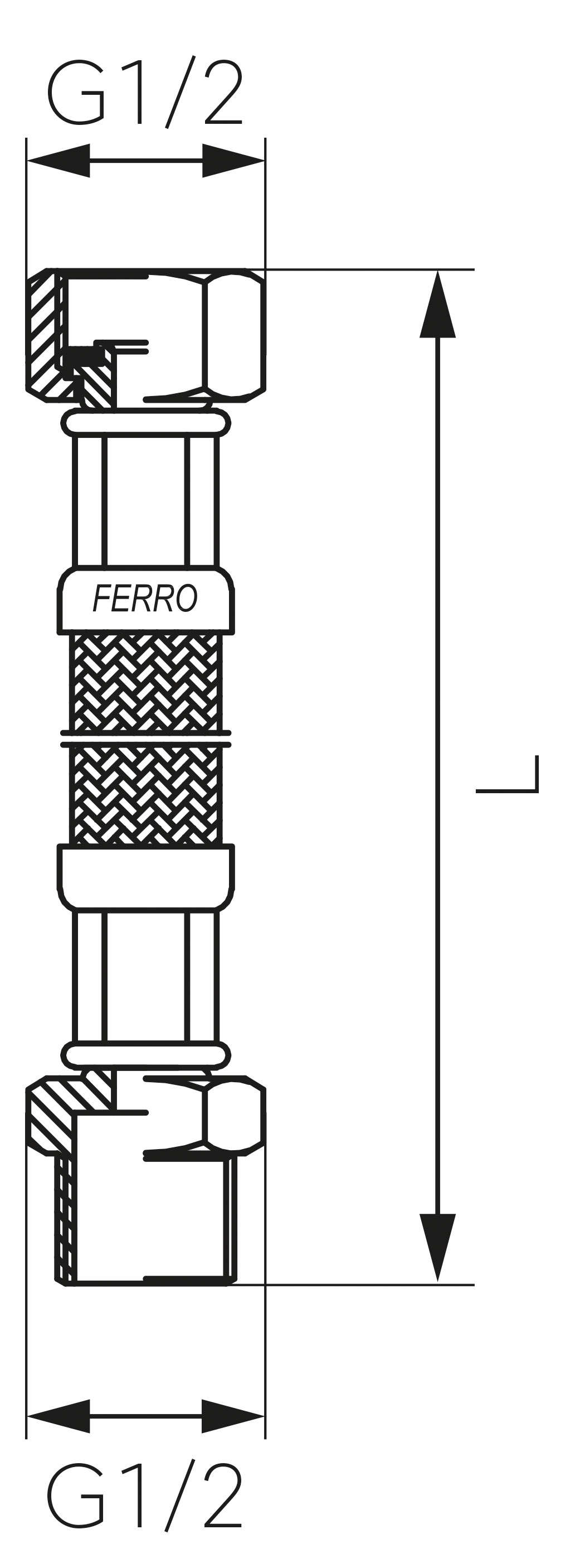 Wąż przyłączeniowy elastyczny FERRO z oplotem (stal), GW x GZ, 1/2'' x 1/2'', długość 30 mm, z uszczelką