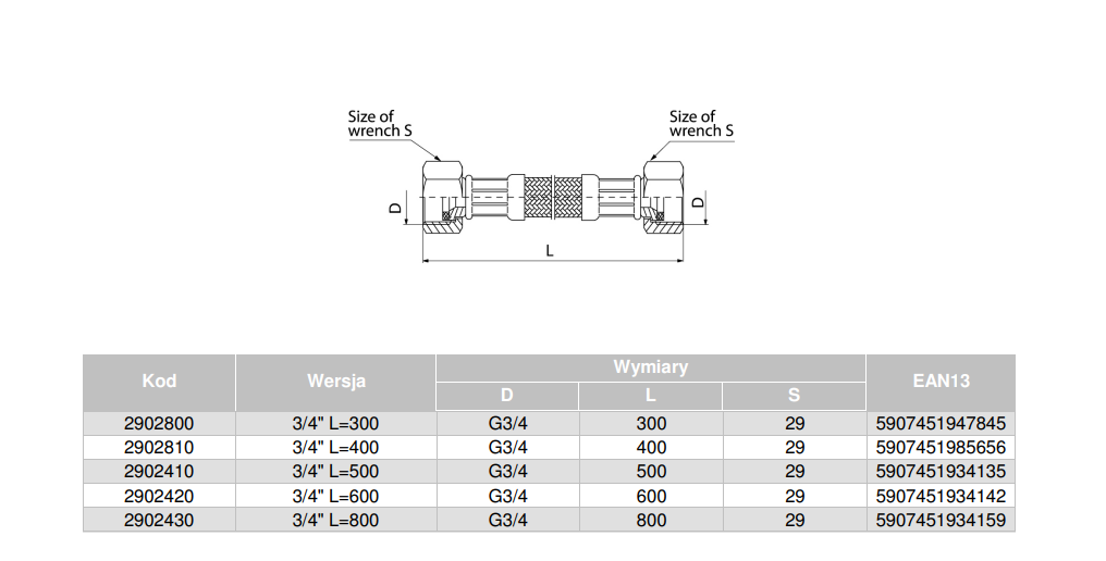 Wąż przyłączeniowy elastyczny VALVEX Viper Plus z oplotem (stal nierdzewna), GW x GW, 3/4'' x 3/4'', długość 400 mm