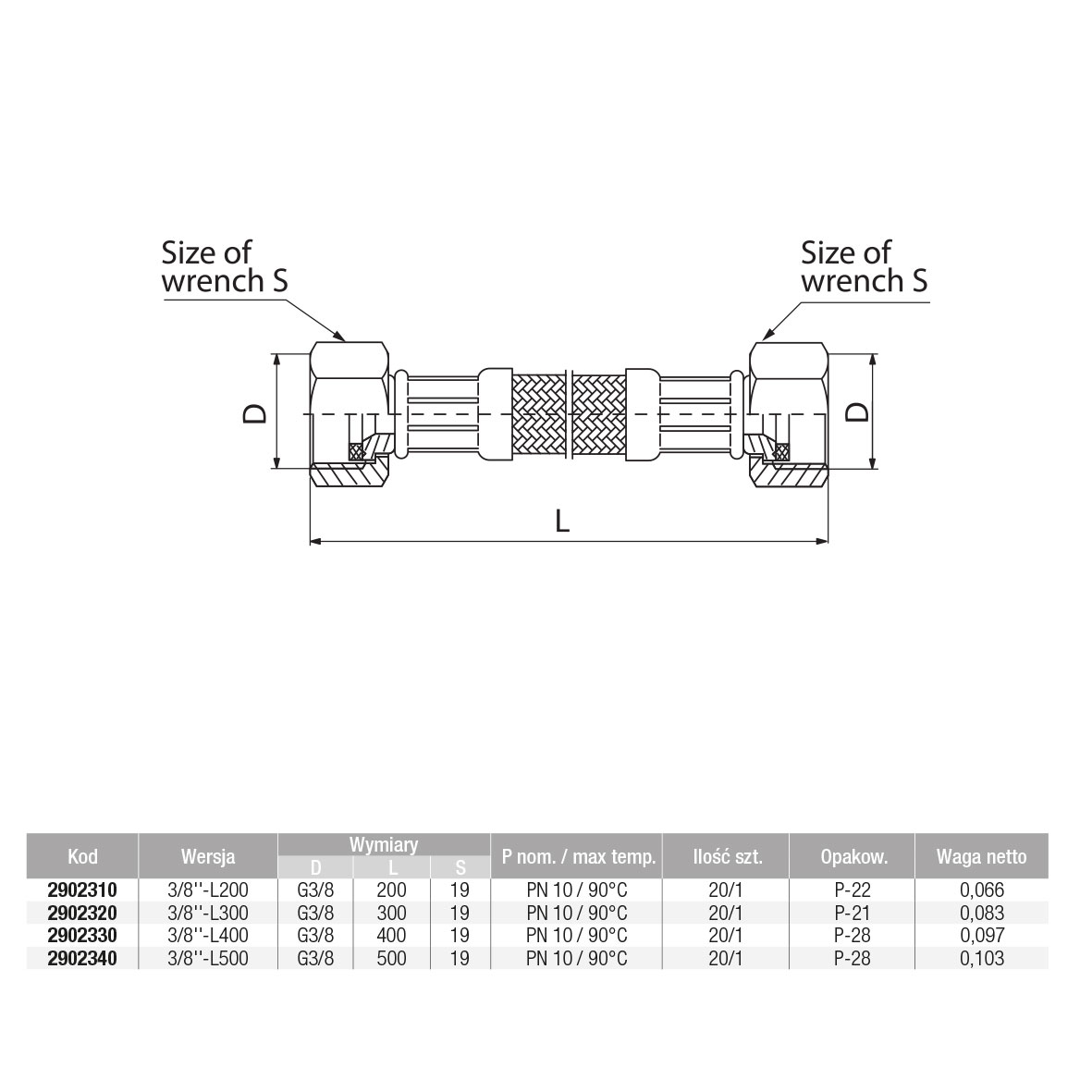 Wąż przyłączeniowy elastyczny VALVEX Viper Plus z oplotem (stal nierdzewna), GW x GW, 3/8'' x 3/8'', długość 400 mm