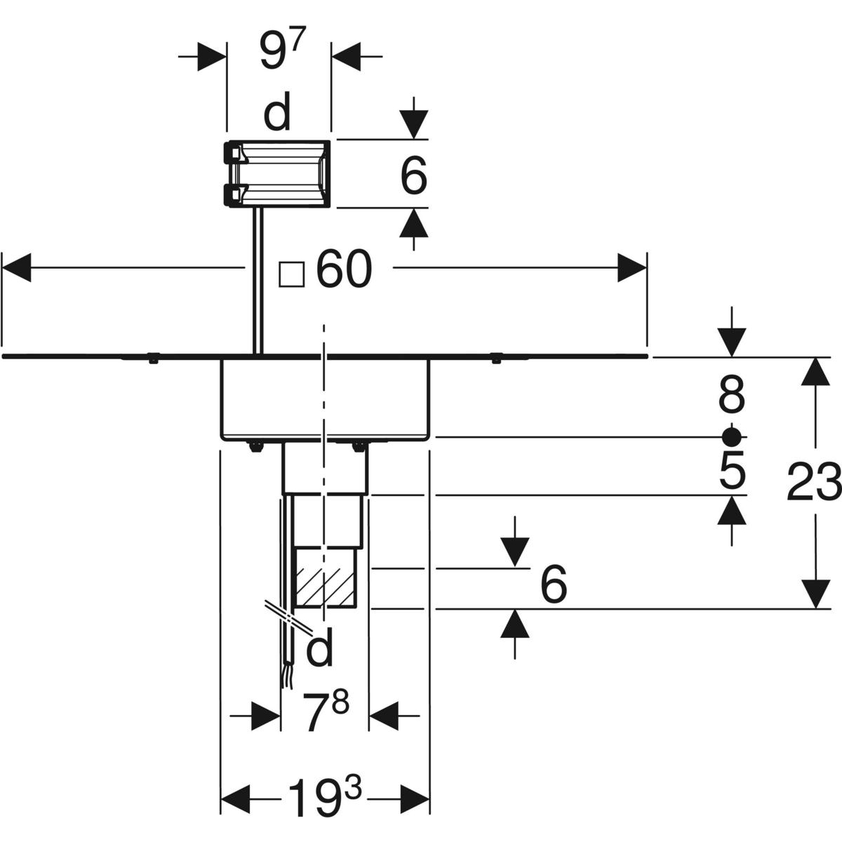 Zestaw przyłączeniowy paroizolacji d56 Geberit Pluvia Kołnierz mocujący skręcany Geberit Pluvia Izolacja przeciwroszeniowa Rohrschott90 Plus Pokrywa skrzynki ochronnej Przepust kablowy Podgrzewacz wpustu Geberit Pluvia 230 V / 8 W