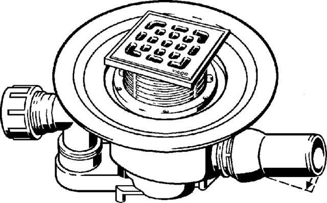 Wpust VIEGA 49216 z 1 przyłączem DN 50, odpływ pionowy, kratka 100x100mm stal