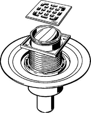 Wpust VIEGA 49363 z 1 przyłączem DN 50, odpływ poziomy, kratka 100x100mm stal