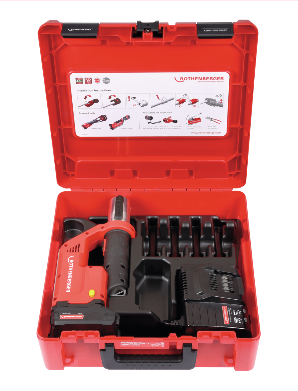 Kompaktowa zaciskarka elektrohydrauliczna z zasilaniem akumulatorowym Li-Ion 18V. Umożliwia zaciskanie złączek metalowych do max średnicy 35 mm i tworzywowych do max 40 mm. Technologia CFT umożliwia zacisk ze stałą siłą 19 kN. Zestaw bazowy z 1 akumulatorem w walizce ROCASE.