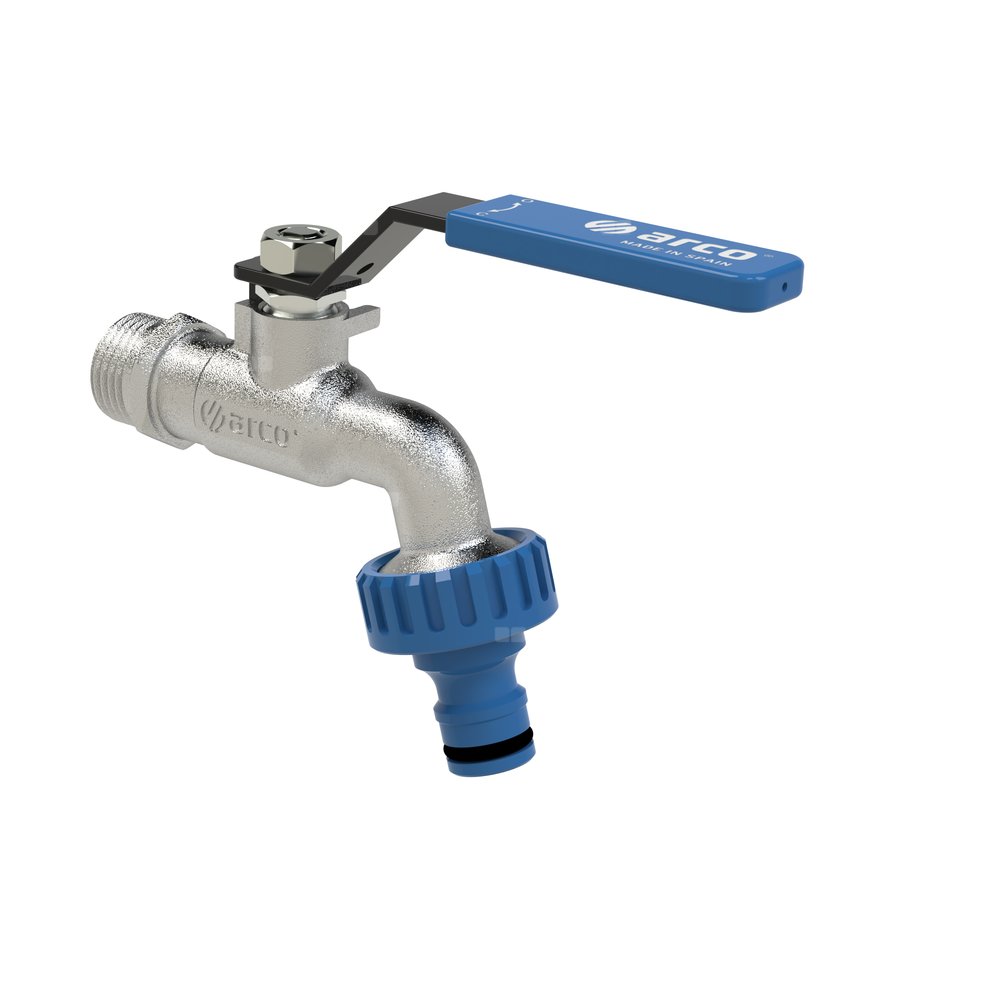 Zawór czerpalny JARDÍN 3/4GZ X 3/4 z szybkozłączką, dźwignia z czarnej powłoki epoksydowej, kolor niebieski
