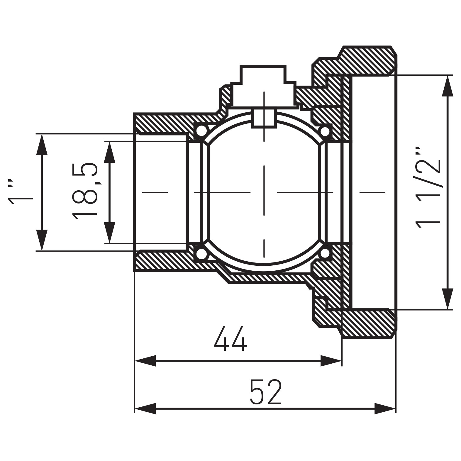 Wytrzymały korpus wykonany z mosiądzu CW617N. Nickel free - powierzchnie kontaktu z czynnikiem nie są niklowane. Zawór wyposażony w półśrubunek G1 1/2 dedykowany do pomp.
