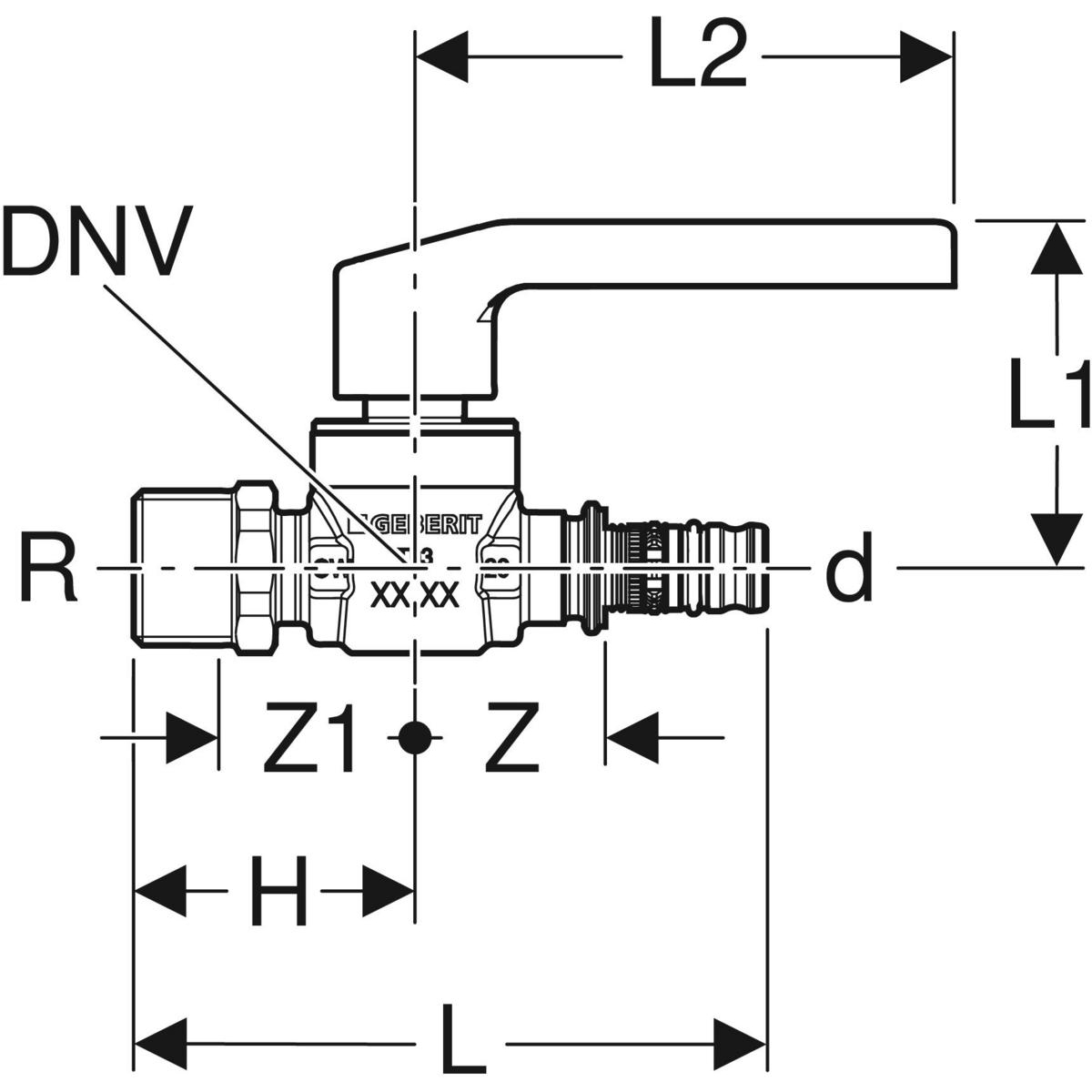 Zawór kulowy Geberit Mepla d26-R3/4 z gwintem wewn., z dźwignią uruchamiającą