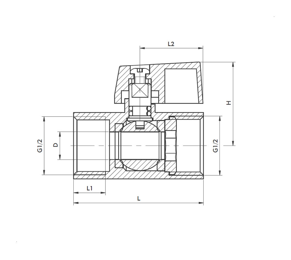 Zawór kulowy do wody mini, nakrętno-Nakrętny z dźwignią 1/2