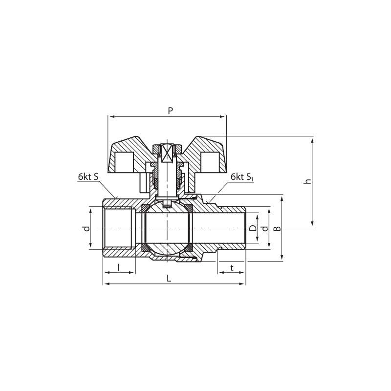 Zawór kulowy PERFEXIM HUZAR typ ciężki PHA-200/4 mosiądz niklowany 3/4'' GZ x GW, uchwyt: motylek