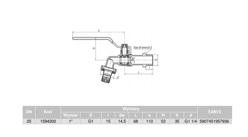 Zawór kulowy VALVEX Oligo mosiądz niklowany czerpalny, PN10 1'' GZ x złączka do węża, uchwyt: dźwignia