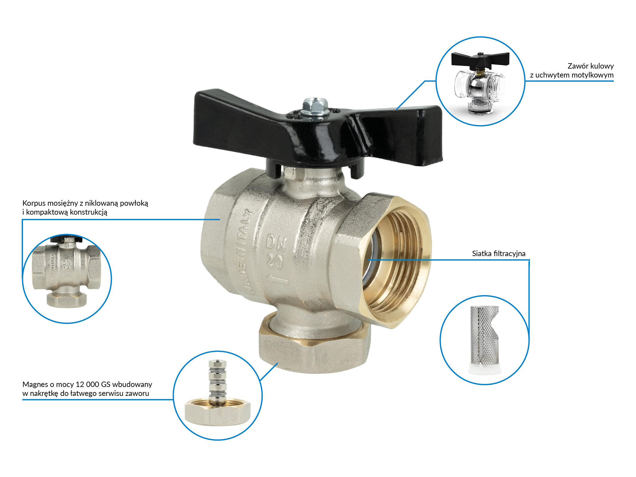 Zawór kulowy z filtrem siatkowym i magnesem BFV, GW G1''