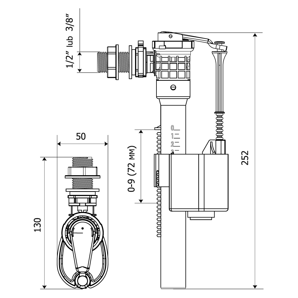 Nowoczesny zawór napełniający z funkcją Water Stop z dwiema końcówkami: 1/2 i 3/8 cala