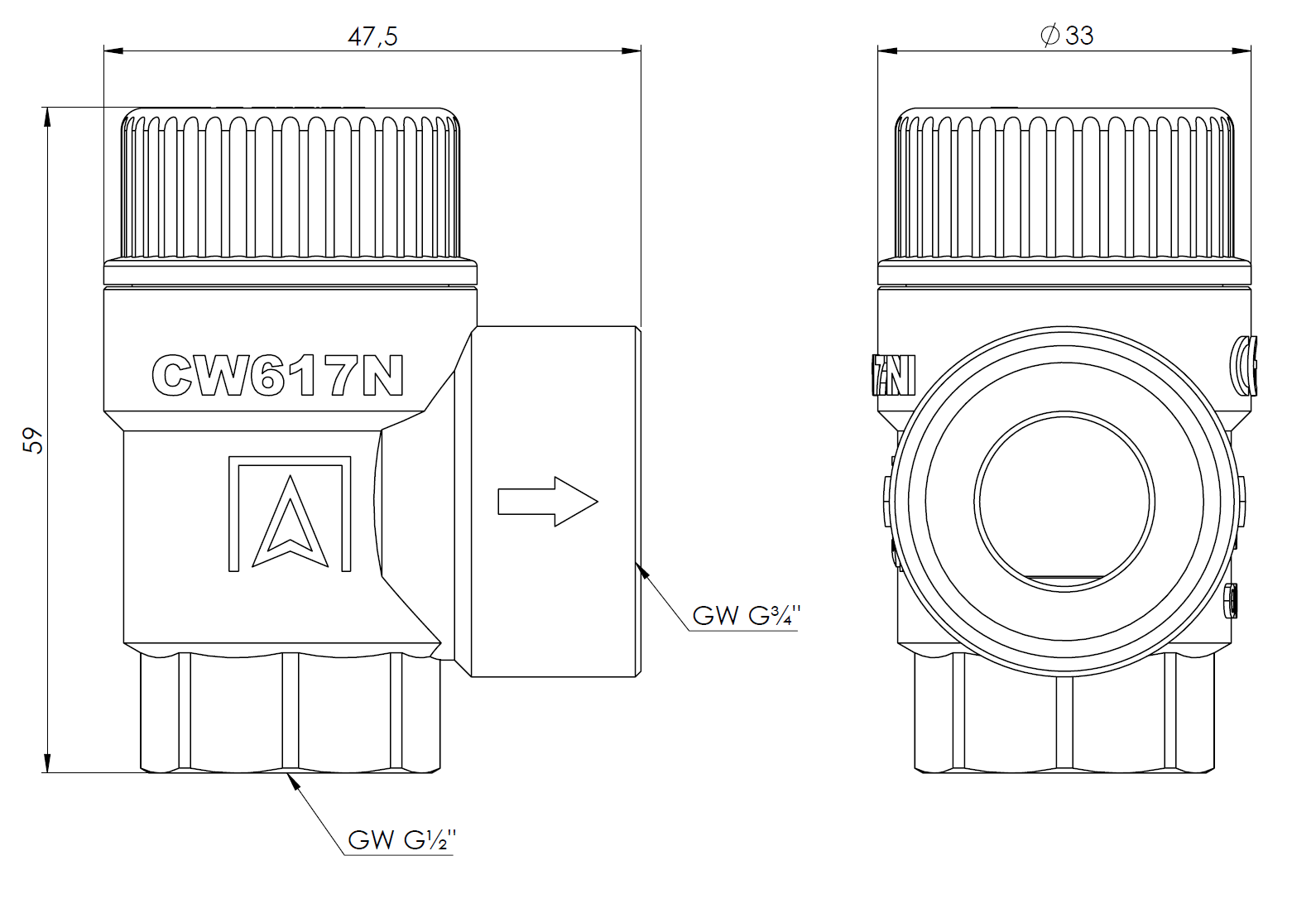 Zawór przelewowy AFRISO MS mosiądz 6 bar GW 1/2'' x 3/4''