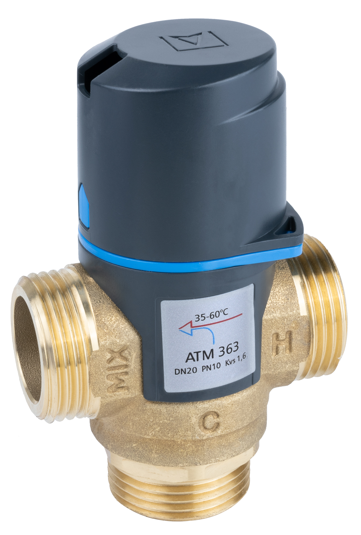 Zawór regulacyjny termostatyczny do wody ciepłej AFRISO ATM 363 mosiądz GZ 1'', DN 20, zakres temp. 35-60'C, Kvs 1.6 m3/h, maksymalna temperatura 90'C, maksymane ciśnienie 10 bar