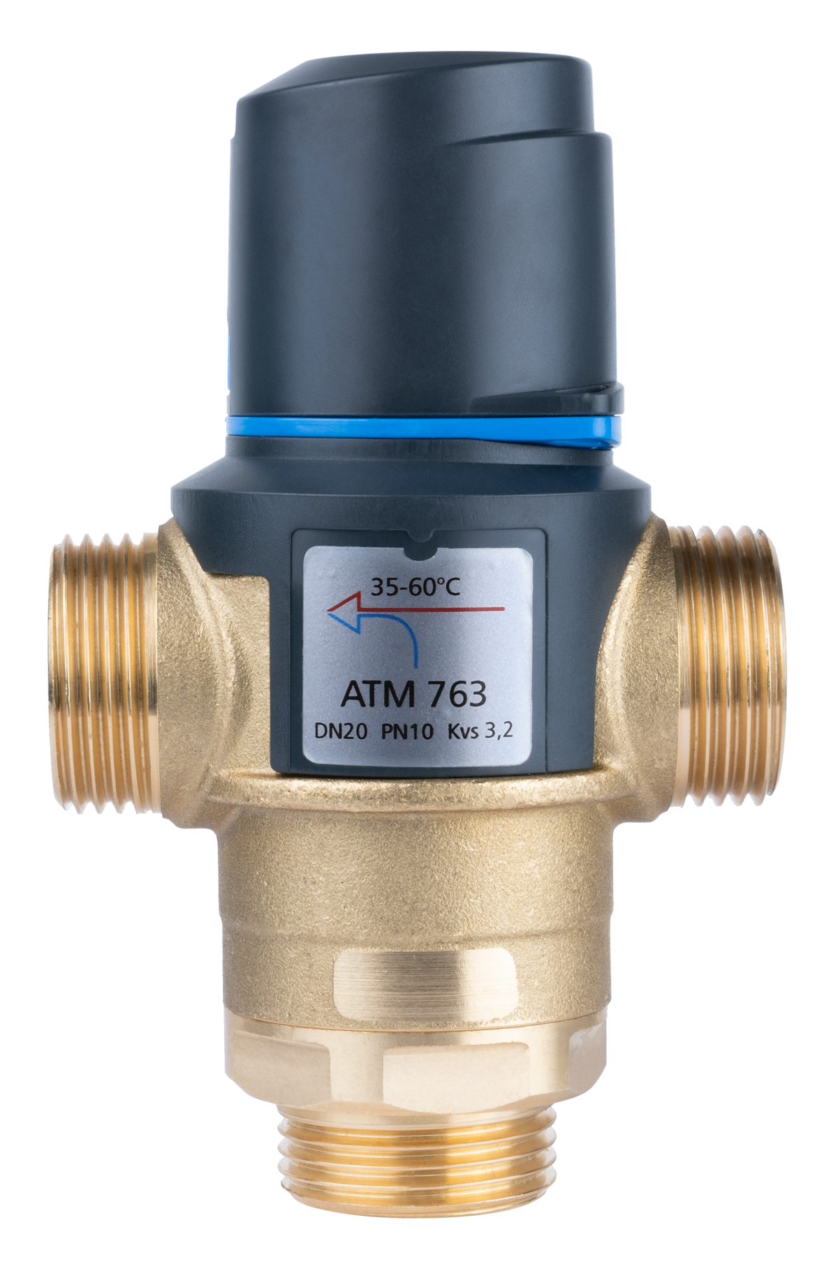 Zawór regulacyjny termostatyczny do wody ciepłej AFRISO ATM 763 mosiądz GZ 1'', DN 20, zakres temp. 35-60'C, Kvs 3.2 m3/h, maksymalna temperatura 110'C, maksymane ciśnienie 10 bar