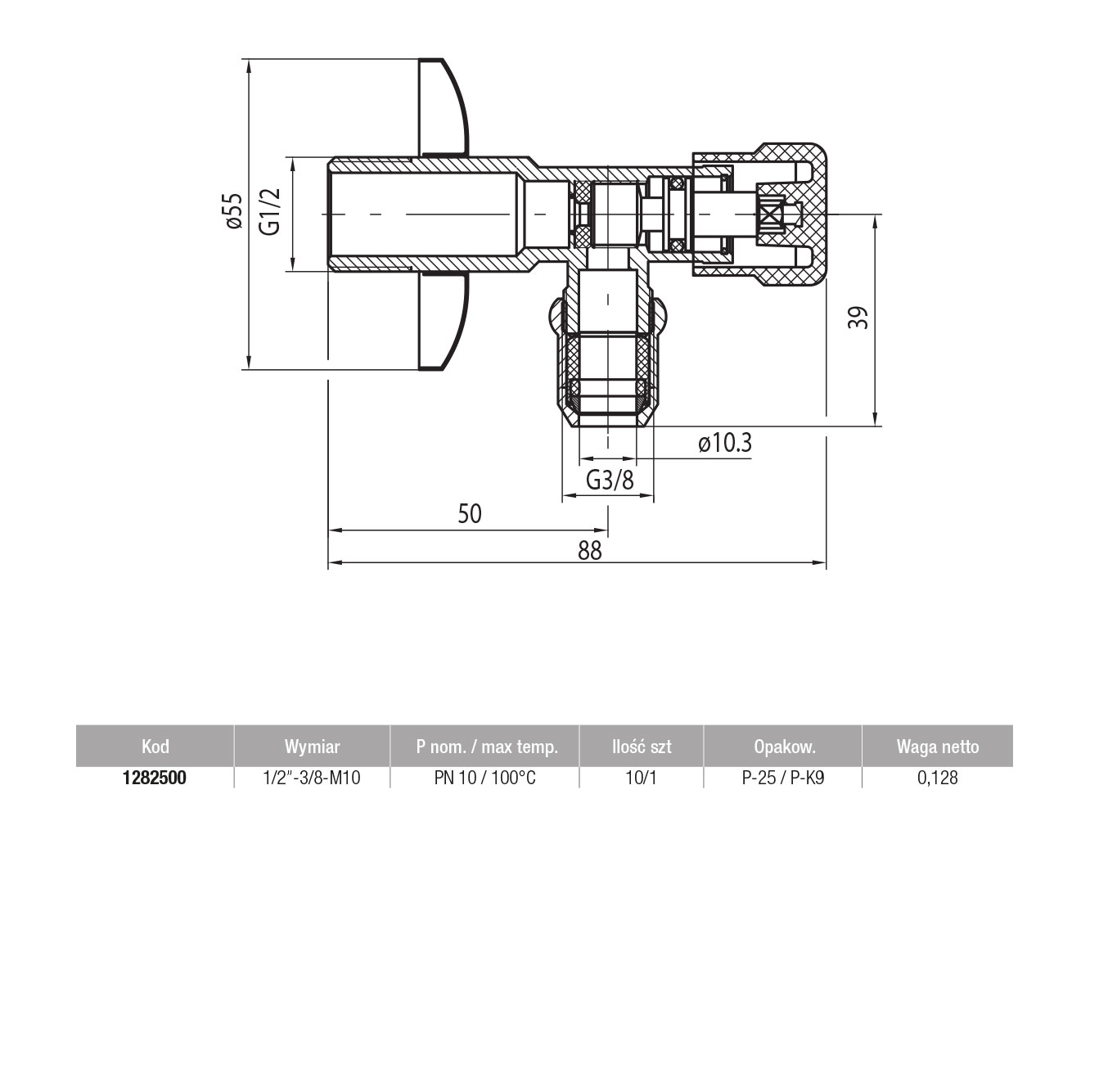 Zawór wodny VALVEX Opal GZ 1/2'' x gz z nakrętką 3/8''