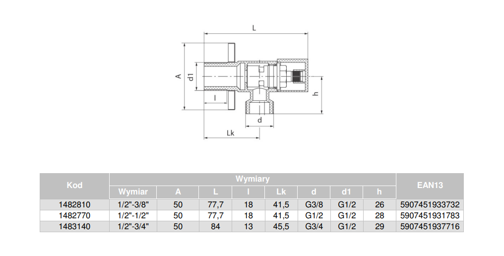 Zawór wodny VALVEX Trangle GZ 1/2'' x GZ 3/8''