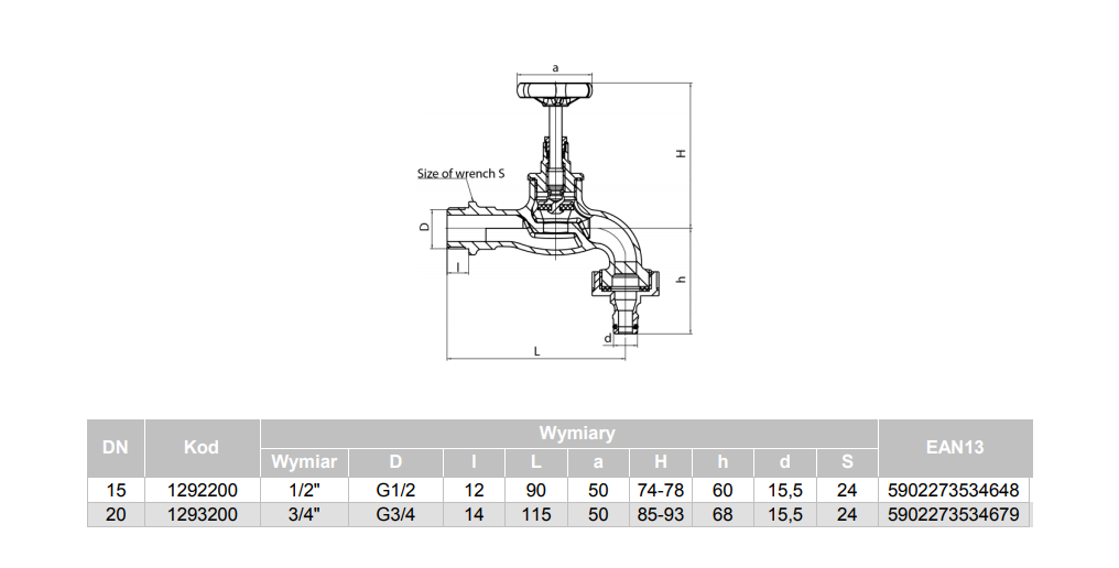 Zawór wodny VALVEX Viking GZ 1/2'' x szybkozłączka do węża 15,5 mm