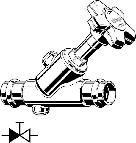 Easytop-zawór skośny KRV, (zawór swobodnego przepływu z zaworem zwrotnym), z SC-Contur, przyłącza zaprasowywane. Wyposażenie: Obudowa i część górna zaworu z brązu lub brązu krzemowego wg DIN 50930‑6 / PN-EN 1982, gniazdo i grzybek zaworu ze stali nierdzewnej, przełożenie wrzeciona, wskaźnik położenia otwarty/zamknięty, ergonomiczne i zamknięte pokrętło ręczne z oznaczeniem zielony/czerwony zamiennie, przyłącze do prób, korek spustowy G¼, elementy uszczelniające EPDM. Dane techniczne: ciśnienie robocze maks. 1,6 MPa (PN 16), maks. temperatura robocza 90 °C, ze znakiem jakości DVGW, nr wzoru 2238.5, nr kat. 757 205, DN: 15 d: 18