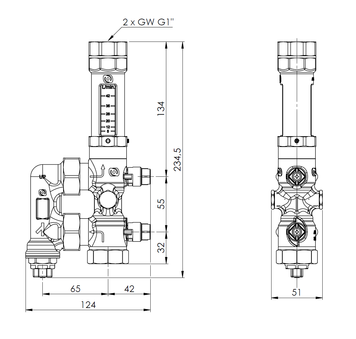 Przepływomierz o zakresie pomiarowym 5-42 l/min.