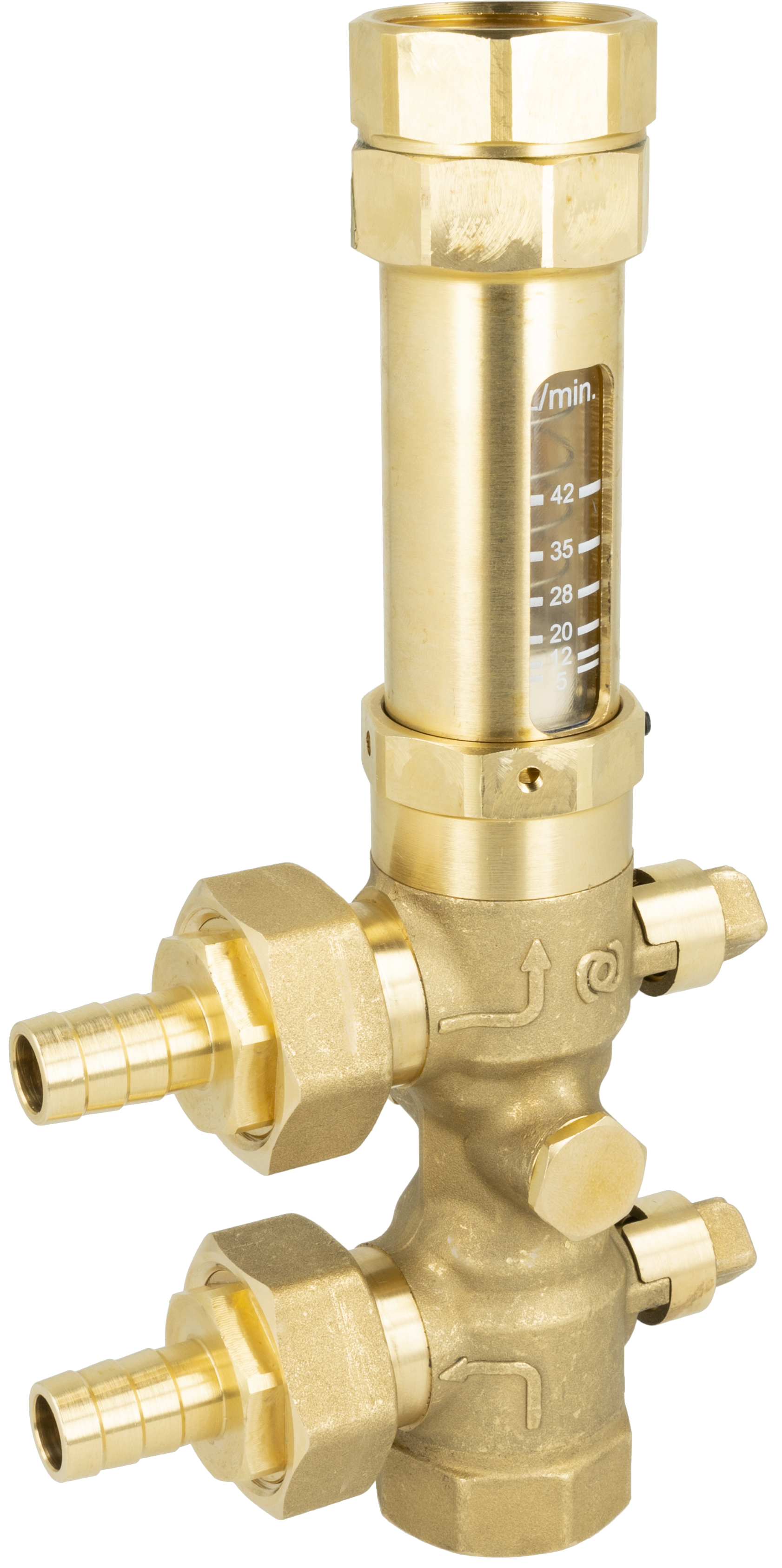 Zespół armatury serwisowej AHS 500 do pomp ciepła, z filtrem siatkowym, z przepływomierzem 5÷42 l/min, przyłącza GW G1''