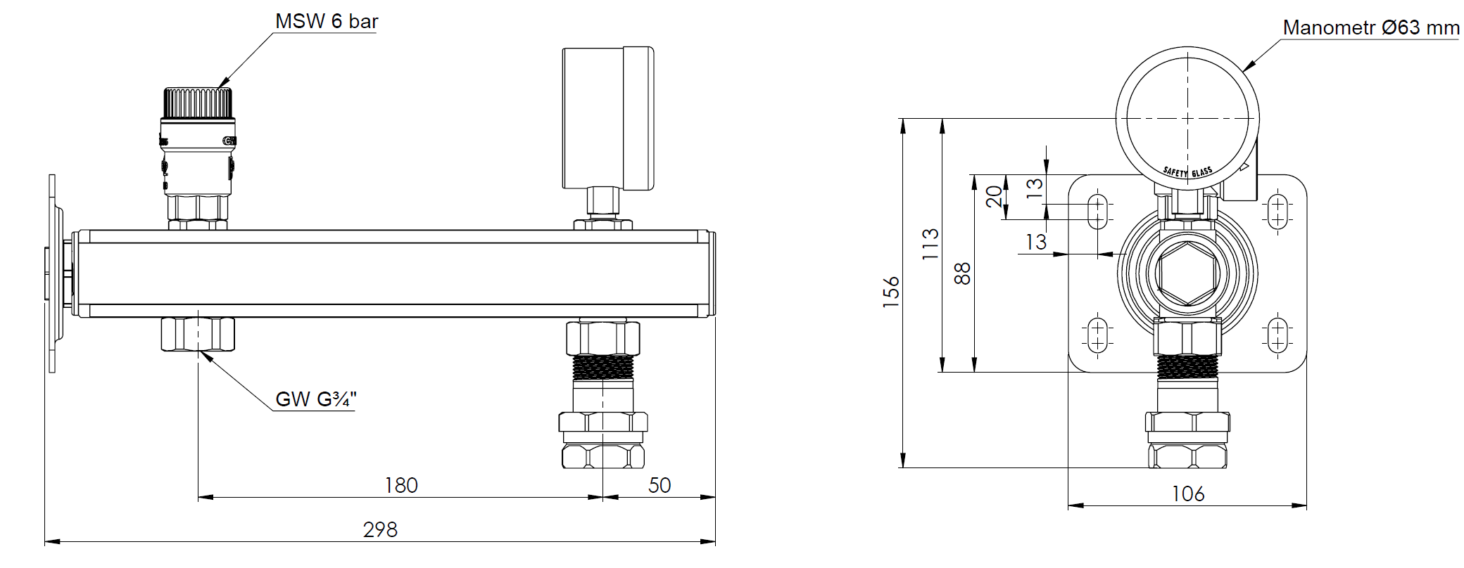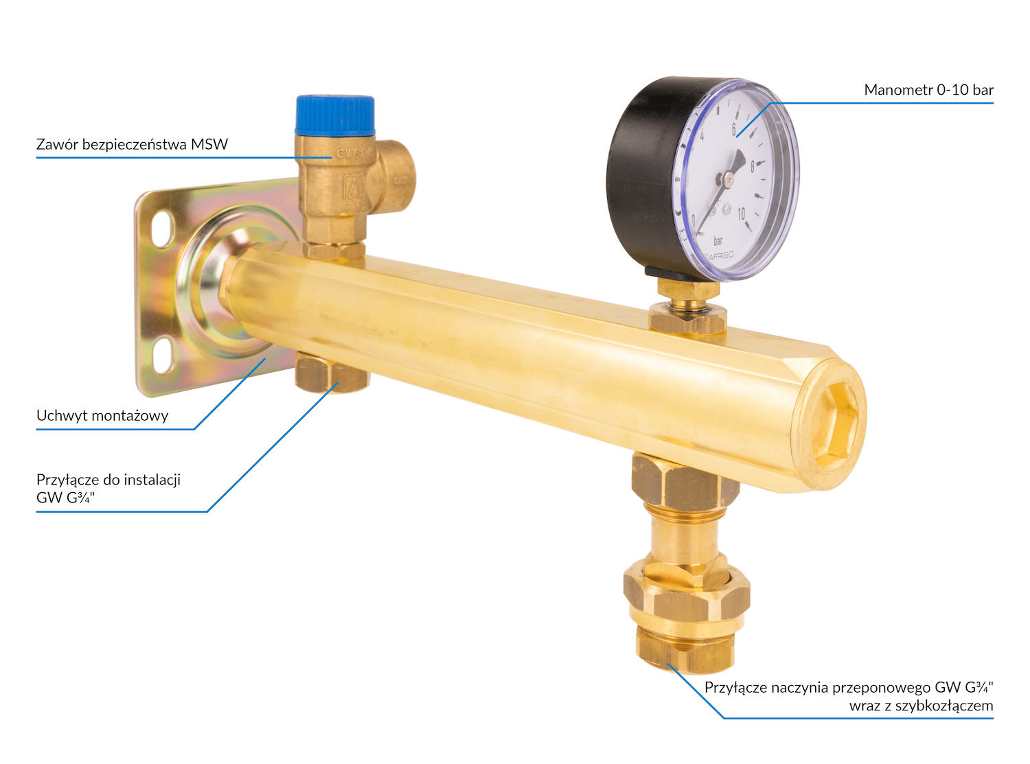 Zespół przyłączeniowy AFRISO BSB 3/4'' GW x szybkozłącze, max. 6 bar + wskaźnik ciśnienia