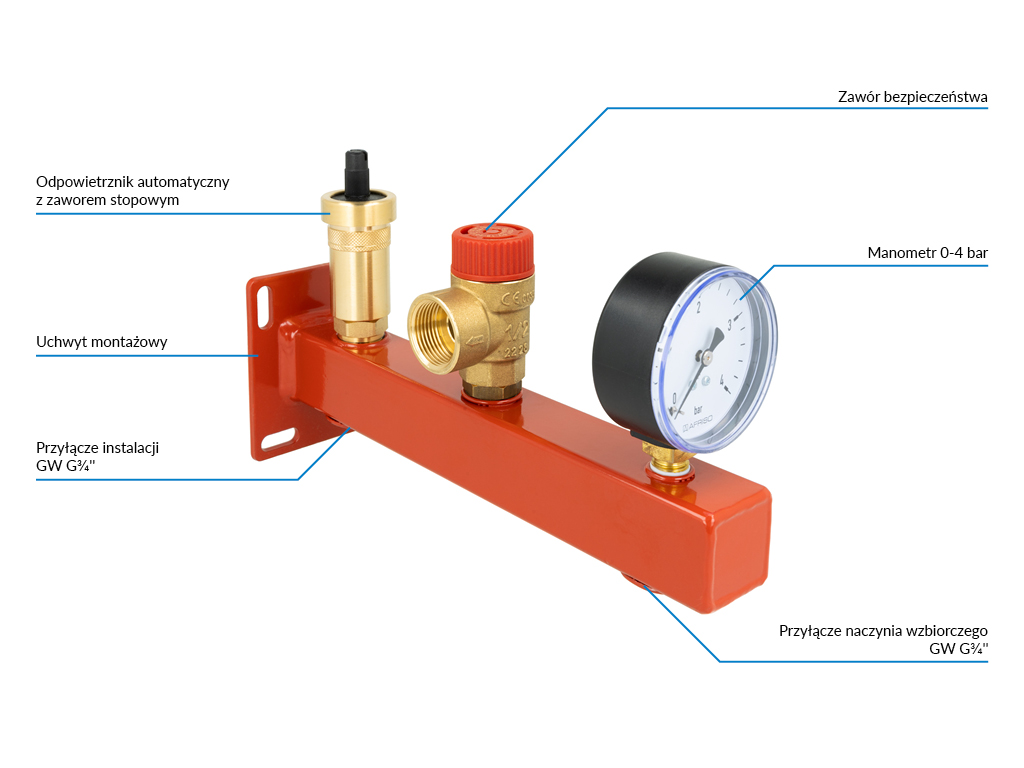 Służy do zamontowania naczynia przeponowego o pojemności do 25 l.