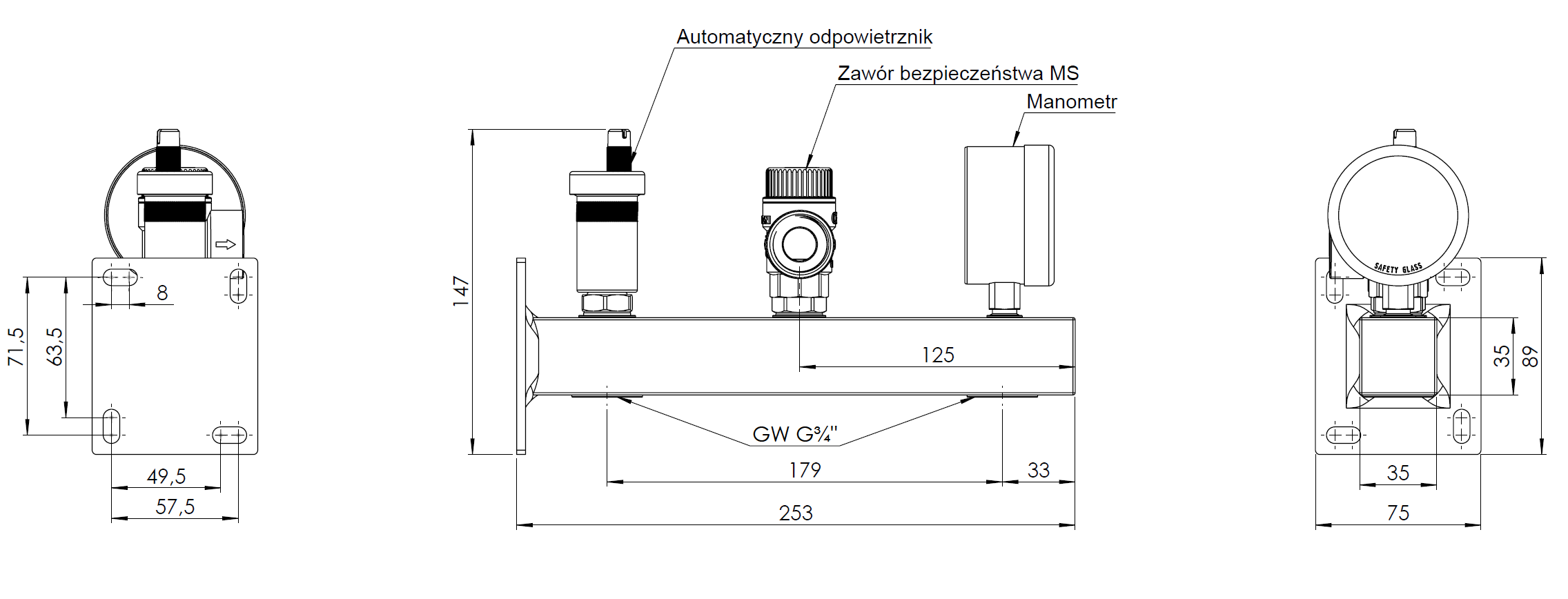 Zespół przyłączeniowy AFRISO BSS 3/4'' GW x GW, max. 1.5 bar + wskaźnik ciśnienia